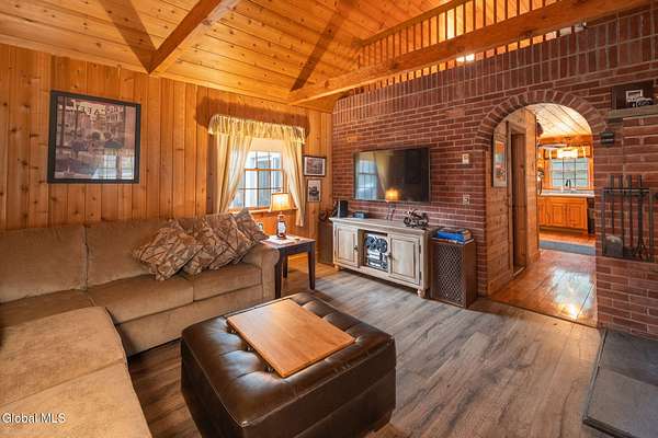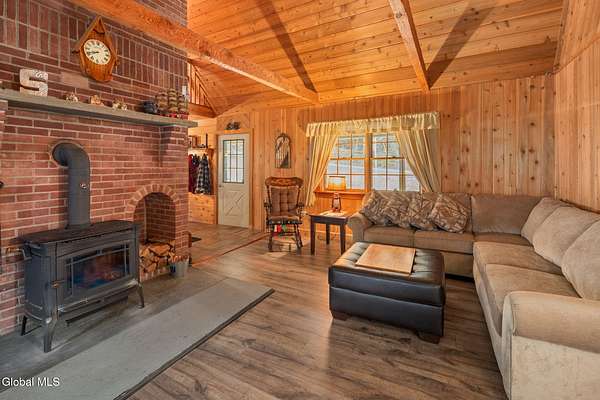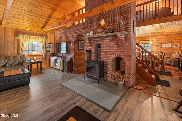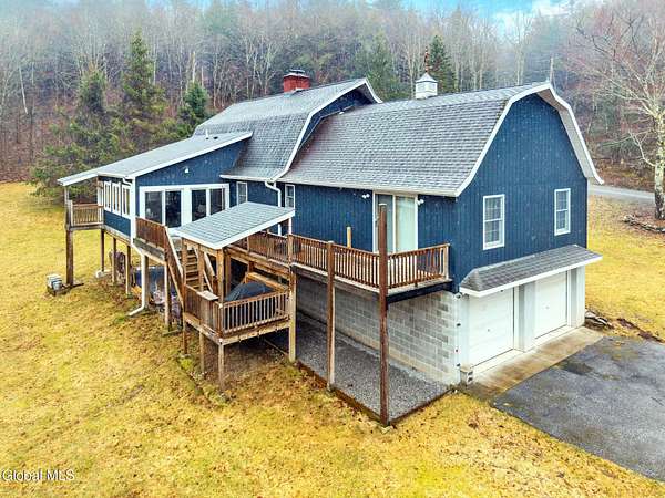 Nestled on 33.2 scenic acres in the town of Gilboa, this inviting Colonial delivers approximately 2,100 square feet of comfortable living space with privacy, charm, and room to roam. The home features 3 bedrooms and 2 full baths and 1 half bath, including a convenient first-floor primary bedroom and one additional bedroom on the main level, with a loft area that functions as a third bedroom--ideal for guests, a private retreat, or flexible living space. A welcoming foyer opens to a warm interior highlighted by beautiful tongue and groove wood throughout, enhancing the home's rustic character alongside a country kitchen, rich wood finishes, and a cozy wood-burning stove. The bright sunroom offers a relaxing space to enjoy the surrounding landscape year-round, while the back deck extends your living outdoors for entertaining or quiet enjoyment. The full basement includes a half bath and provides excellent storage, workshop, or finishing potential. An attached 2-car garage adds everyday convenience. The expansive acreage offers a mix of open and wooded land, along with a fresh water stream--perfect for recreation, exploring, or simply enjoying the privacy of your own countryside setting. Located in the town of Gilboa, this property places you in the heart of the Schoharie Valley with access to outdoor adventure, local farms, wineries, and small-town charm--just a short drive to area amenities.