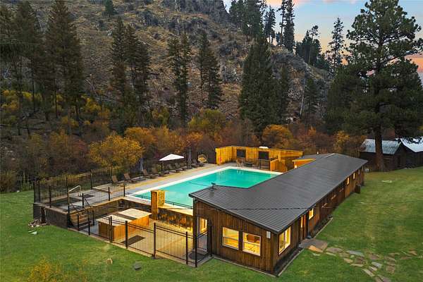 Your Private Retreat Awaits in the Scenic South Bitterroot Valley! The estate features a natural, chemical-free hot springs pool, with the tranquil Warm Springs Creek flowing through its center, enhancing the peaceful and serene atmosphere. The main home provides 3,797 square feet of luxurious living space, creating the perfect exclusive sanctuary or family retreat. In addition to the main residence, the property includes an East Game Lodge and 12 historic cabins, 4 of which have been thoughtfully remodeled with an attention to detail. The guest cabins reap the benefits of the commercially upgraded septic system. Seize the rare opportunity to own an iconic and historic estate in the heart of the South Bitterroot Valley. The renowned Medicine Hot Springs property, set on 119 acres of pristine land, is now available! A historic three-tub bathhouse on the North side of Warm Springs Creek offers a glimpse into the past, inviting you to indulge in its timeless charm. Surrounded by Forest Service land on three sides, this expansive retreat offers you a chance to own a unique and historic property where nature, relaxation, and rustic elegance blend effortlessly. Buyers and their agents to verify all information. If you are interested in viewing the property and all the upgrades, we do require proof of ability to purchase. Please note, some photos for this listing have been virtually staged.
