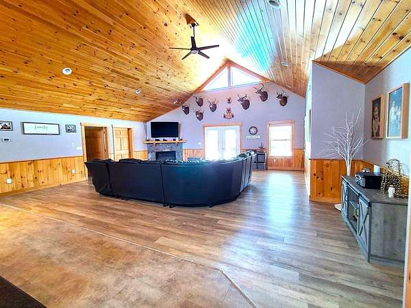 Stunning 108-Acre Estate with panoramic views, guest cabin & endless possibilities. Welcome to a truly extraordinary property where natural beauty meets comfort, privacy, and opportunity. Nestled on 108 breathtaking acres, this 4-bedroom, 3 full bathroom home offers a rare chance to own a private retreat with unmatched scenic views, unforgettable sunsets, and even the occasional display of northern lights and dramatic thunderstorms. The main residence features a spacious and thoughtfully designed layout, perfect for both everyday living and entertaining. A classic wraparound porch invites you to relax and take in the sweeping landscape from every angle--whether you're enjoying your morning coffee or winding down at dusk. Car enthusiasts, hobbyists, or those needing extra storage will appreciate the expansive 3-bay garage, offering ample room for vehicles, equipment, and more. The land itself is a nature lover's dream. With abundant wildlife, established hunting grounds, peaceful ponds, fruit trees, and thriving gardens, this property provides a self-sustaining lifestyle with endless outdoor enjoyment. Whether you're exploring wooded trails or tending to your garden, every inch of this acreage offers something special. In addition to the main home, a charming one-room cabin with a full bath and detached garage provides the perfect space for guests, extended family, or rental income potential. This property is more than just a home--it's an opportunity. With its expansive acreage and versatile layout, it holds incredible potential as a private family compound, a picturesque wedding venue, or a unique event destination. If you've been searching for privacy, beauty, and limitless potential, this one-of-a-kind estate delivers it all. Schedule your private tour today and experience the possibilities firsthand. *Property also includes a camp (576 sqft) has own well and septic, 24x24 detached 2 car garage and propane and heat pump for heat.*