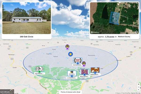 NOT A DOUBLE WIDE! Motivated seller! This stick built home nestled on 1.79 acres, this beautiful 4 bedroom, 2 bath ranch home offers generous living space. The recent addition of a master suite has significantly enhanced the property. A fresh coat of paint has been applied throughout the home, complemented by new HVAC and water heater installations. Located in Hull Ga, Madison county. This property enjoys a tranquil setting on a low-traffic, paved road. The huge level yard has lots of planted trees and room to play, Property features a large workshop, lots of room for parking an RV or boat. With shopping and restaurants mere minutes away, this property has lots of convenience.