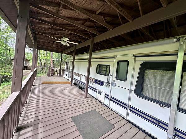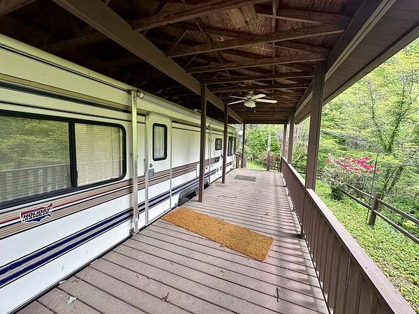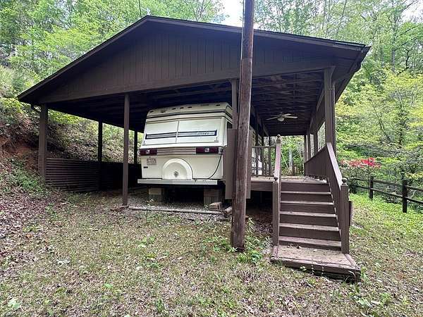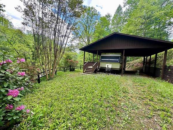 What makes this lot so special? It's perfect for anyone who loves Lake Fontana and desires a seasonal retreat. This property comes with an overhang pavilion with a porch, designed for the included 1989 33' Imperial RV. Electricity is on site and an old spring water system exists. There is an option to install a well. This property includes an additional parcel (ID #: 662303000006), bringing the total land to approximately 1.22 acres. Both lots display small seasonal views overlooking Lake Fontana and offer convenient access to the lake. In the springtime, the property is surrounded by blossoming landscaping. The upper lot presents a wonderful opportunity to build a small cabin, and clearing a road to this section would enhance accessibility. You can enjoy all the amenities that Lake Fontana has to offer