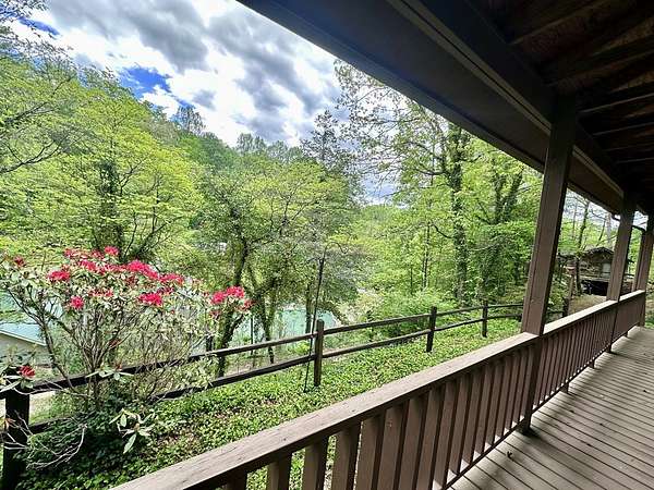 From Highway 74 West, turn onto NC-28 heading towards Robbinsville. Make a right onto Lower Panther Creek Road. Follow Lower Panther Creek Road and then turn left onto Prince Boat Dock Road. Continue on Prince Boat Dock Road until you see a large garage. Turn right and then drive around to the left behind the garage. The property will be on your right. This can be a busy road, please use caution