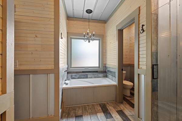 - Beamed Ceilings, Built-In Features, Cathedral Ceiling(s), Double Closets, Double Vanity, En Suite, Entrance Foyer, Natural Woodwork, Open Floorplan, Pantry, Separate Shower, Soaking Tub, Split Bedrooms
