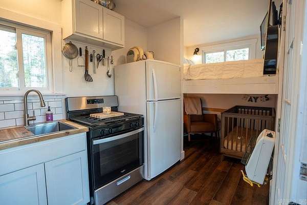 Escape to the woods with this versatile 30-acre property offering privacy, convenience, and endless possibilities. Whether you're searching for a hunting retreat, a peaceful getaway, or the perfect spot to build your dream home, this property delivers. A shipping container-converted studio tiny home is already in place, featuring a spacious covered porch ideal for relaxing and enjoying the surrounding wildlife. A private, winding driveway leads to a cleared homesite, ready for future construction or continued enjoyment of the existing tiny home. The property offers access from both S Sawmill Road and Jackson Road and includes established septic, public water, electric, as well as fiber internet. Use it as a weekend cabin, a temporary residence while you build, or your own private hunting retreat in the woods.