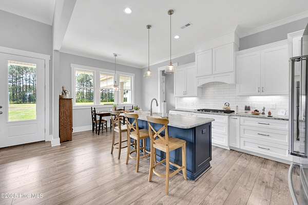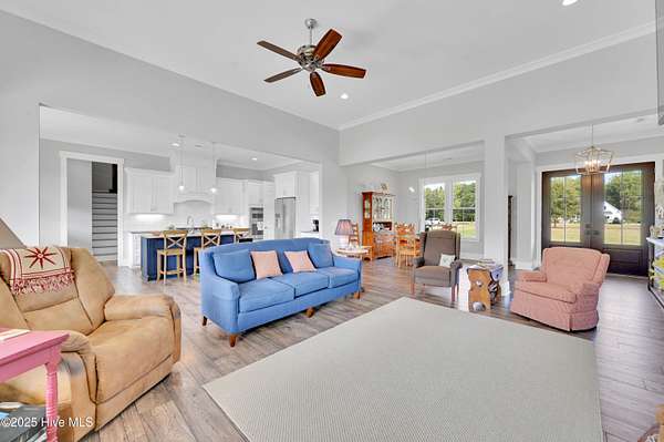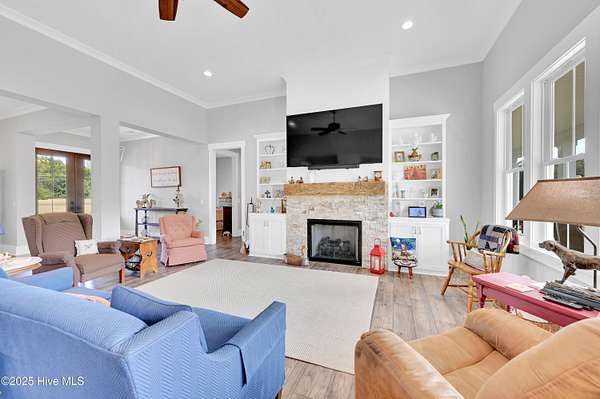 Tucked away on 6.46 acres of serene countryside, this custom-built 2022 Bryan Lyons home is more than a residence-it's a lifestyle. Imagine waking up each morning to the quiet beauty of nature, sipping coffee on your wraparound porch while a gentle breeze drifts through the trees, and yet being only minutes from town. Step inside to soaring ceilings and sun-drenched windows that flood the home with light. The open floor plan is warm and inviting, anchored by a fireplace with elegant built-ins, designed for both quiet evenings and memorable gatherings. The heart of the home is the gourmet kitchen, boasting a generous island, solid surface countertops, and a walk-in pantry that will amaze you. The spacious owner's suite is a true retreat with its spa-like bath, featuring a huge walk-in shower, split vanities, and a dream closet. Two additional bedrooms provide comfort for family and guests, while the versatile bonus room can be whatever your lifestyle requires-an office, playroom, studio, or guest suite. Every detail reflects thoughtful design and timeless craftsmanship. A whole-house generator ensures peace of mind, while the outbuilding/barn is a masterpiece of its own-a workshop and storage haven that's every hobbyist's dream. This property is more than a home-it's a sanctuary of style, comfort, and privacy, where modern luxury meets the tranquility of country living.