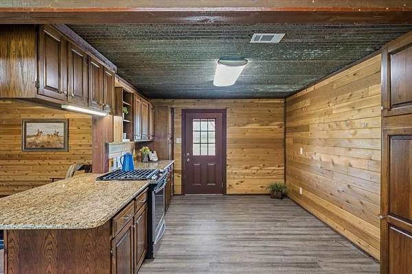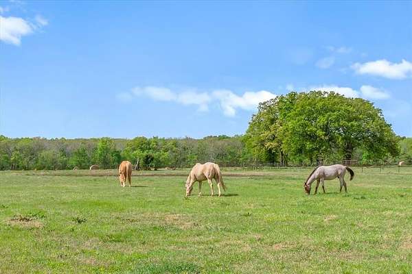 Country life with the convenience of modern updates on this 15 acre horse ranch, has updated ranch home, with well equipped horse barn, 2500 SF shop, arena, 2 ponds located just three miles from Highway 80 and within the desirable Edgewood ISD. The beautifully updated, ranch style 2,348 sq. ft. home offers all the country charm with warm wood plank walls, LED lighting, and a spacious galley kitchen with granite counter, a gas cooktop and a walk-through pantry leading to the laundry room. Enjoy two inviting living areas and a large master suite with a luxurious bath, patio door overlooking open pasture views, and an adjoining space that could serve as a third bedroom or oversized closet. Relax on the 40x10 covered patio and take in stunning sunsets and star-filled skies. Equestrians will appreciate the well-designed 3,750 sq. ft. horse barn featuring six partitioned stalls, a tack room with saddle holders, a vet room, and guest or ranch-hand quarters complete with a half bath and kitchen. Outside, the pipe-fenced paddock with 2 stalls sits just beyond the barn, and the lighted riding arena makes evening rides a pleasure. Electric and water service is available at every pasture and at the arena for ultimate convenience. The property also includes a 50x50 shop building with electric and water connections, plus a 25x50 overhang—ideal for equipment storage, RV, trailers, or additional workspace. Further amenities include a storm shelter, two ponds, cross-fencing, pipe fencing along the front, and nearly 1,000 feet of road frontage. The metal roof and spray-foamed attic add comfort and energy efficiency year-round. This exceptional property combines a thoughtfully updated home, top-tier equestrian facilities, and a prime location close to town—offering the best of country life and convenience. Ag exemption in place- out of city limits- No known restrictions.