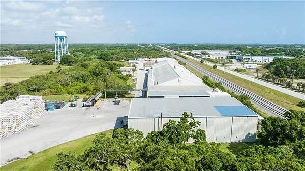 Centrally located in Indian River County, this 16.56-acre industrial property offers a rare opportunity with a well-maintained 90,000+/- sq ft warehouse. Features include 16'+ ceilings, 22,000 sq ft cold storage (1,000 pallet capacity), fire sprinkler system, 5,360 sq ft office space with multiple offices & a conference room. Ideal for manufacturing, distribution, food processing, storage. On FEC Rail, with natural gas, 3-phase power, county water/sewer, dock-high loading, & ample parking(70+ cars, 50+ trailers). Just one block from US-1 & minutes to the airport-prime for industrial operations.