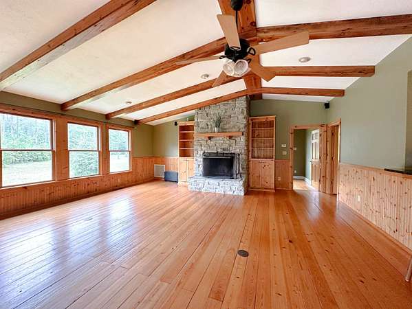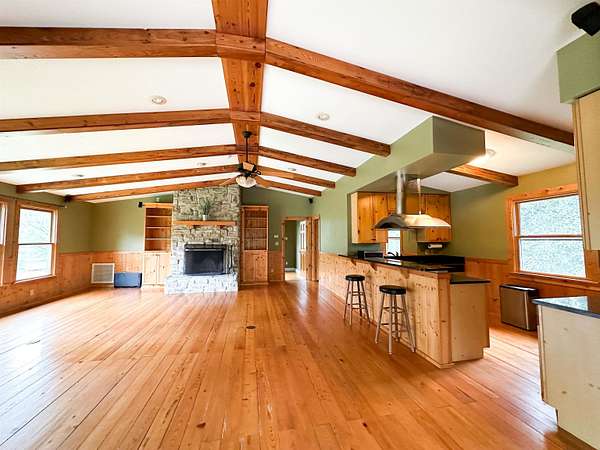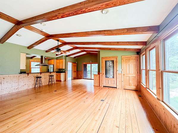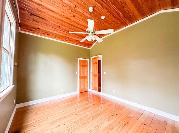 Handsome two-story log cabin for rent on 17+ acres of secluded woodlands. Primary living space on second floor features beautiful pinewood floors with matching cabinets, paneling, trim, doors, and architectural beams. Full kitchen with granite counters and stainless-steel appliances overlooks spacious living room/dining room with wet bar and fireplace flanked by built-ins. Windows and balcony provide sweeping tree-house views of surrounding clearings and wildlife! Primary bedroom has two walk-in closets with cedar shelving, toung & groove wood ceiling, and full bath off hall. Additional private bedroom suite downstairs off large downstairs recreation space. Property is gated for security, convenient to I-10, and equidistant from Tallahassee, Havana, and Quincy. A must see!