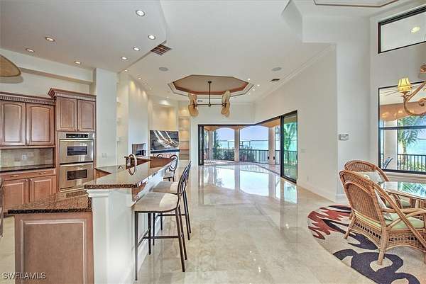 Garrison Flood Panels just installed on all garage openings for peace of mind!!! Welcome to 2600 McGregor Blvd., where waterfront luxury living meets captivating natural beauty! Custom designed home boasts an impressive array of features, including 4 BR, 4.5 Baths, Den, 4387 sq. ft. utility garage, 3.5 garage and an array of thoughtfully designed living spaces for both relaxation and entertainment. Upon entry you are greeted by a grand foyer that leads into dining room, sitting area and breakfast room with panoramic views of the majestic Caloosahatchee River. The heart of the home is the gourmet kitchen, complete with center island w/sink and raised breakfast bar. The family room is designed with for comfort and style, featuring zero corner impact sliders, cozy fireplace and built in shelving. Just off the kitchen is the butlers pantry with exceptional cabinet space and wine cooler. Right of the entry, enjoy a spacious private den and half bath. Retreat to the luxurious main suite, where you will wake to panoramic views of the river, sitting area, two walk in custom closets, walk in shower w/double heads, bubble tub and a designated workout area. Additional interior features include impact windows and doors throughout, high volume ceilings, tray ceilings, plantation shutters, elegant window coverings, crown molding and custom lighting throughout. Entertain in style outdoors with breathtaking sunset views, heated pool, jacuzzi tub and loads of seating area. Boating enthusiasts will appreciate the private dock equipped with two boat lifts, providing easy access to the river and beyond to Fort Myers Beach, Sanibel Island, Captiva Island and the Gulf of Mexico. Remarkable Estate size lot of 1.97 acres, 163 feet of river frontage, side canal w/small craft launch for canoe/kayaks and a walkway. Plus for peace of mind, a home warranty in included with the sale. Experience the epitome of waterfront living, conveniently located, this home is walkable to the Edison Ford Estates and downtown Fort Myers, offering endless opportunities for entertainment, dining and cultural exploration! It's time to "Live The Waterfront Life"! Ready to Move In within 30 days.