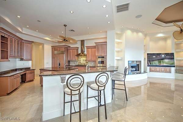 - Bathtub, Bedroom On Main Level, Bidet, Breakfast Area, Breakfast Bar, Built In Features, Closet Cabinetry, Coffered Ceilings, Dual Sinks, Eat In Kitchen, Entrance Foyer, Fireplace, High Ceilings, Jetted Tub, Kitchen Island, Multiple Shower Heads, Pantry, Separate Formal Dining Room, Separate Shower, Tray Ceilings, Wet Bar