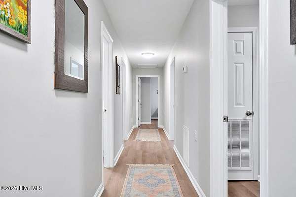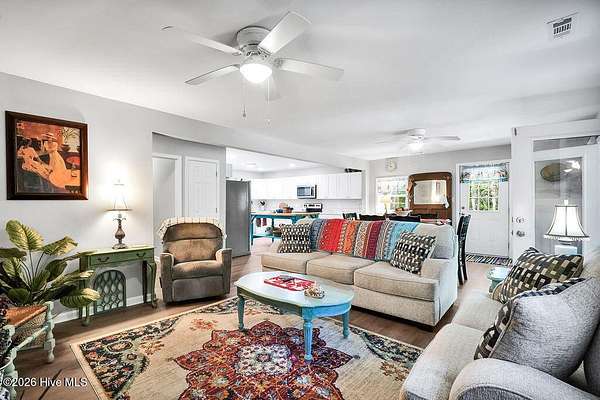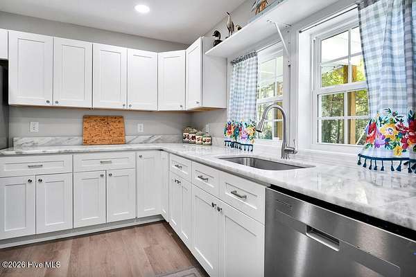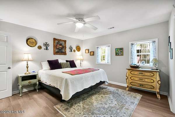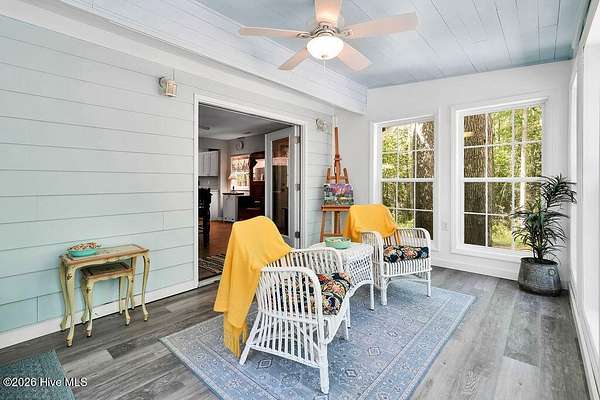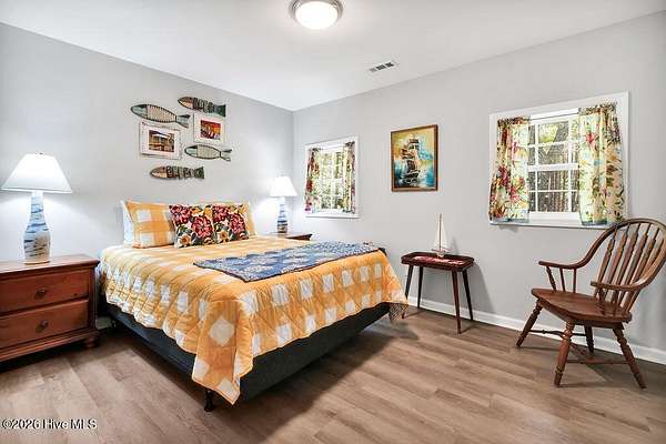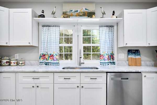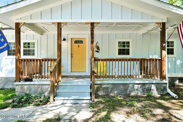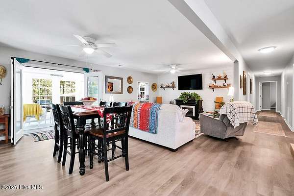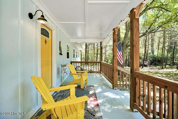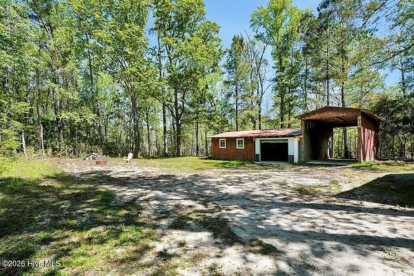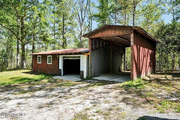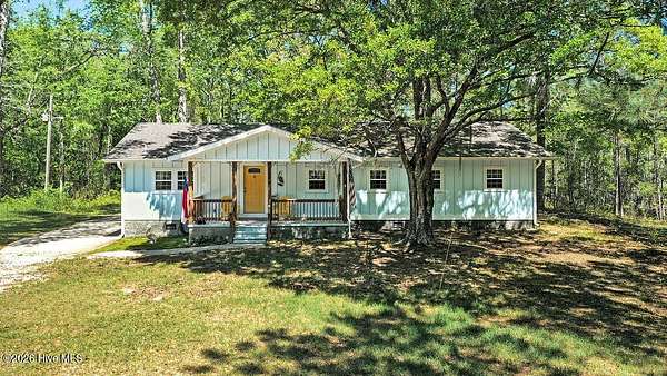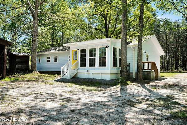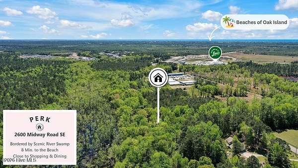 DISCOVER THIS HIDDEN GEM ON NEARLY FIVE WOODED ACRES JUST MINUTES FROM OAK ISLAND BEACHES AND MIDWAY COMMONS SHOPPING CENTER. Imagine the convenience of living a stone's throw to Lowes Foods and restaurants and the bridge to the the Oak Island beaches! Located about a mile south of the intersection of Hwy 211 and Midway Road, this 3 bedroom 2 bath cottage is nestled on a very private wooded lot with multiple outbuildings for your boat, tool shop or artist's studio. The rear of the property includes a water feature with endless opportunities for viewing wildlife and soaking up nature. The cottage home has been renovated in the past several years and features an open floor plan and single level living. The roof and HVAC were replaced in 2022. There is also new LVP flooring through the home and new kitchen cabinets, quartz countertops and stainless appliances all installed in 2022. The kitchen features a spacious custom built center island that conveys with the home. The combined living and dining area includes an electric fireplace for cozy winter gatherings and an enclosed sunroom for additional living space. Bathrooms and laundry areas are very spacious with ample areas for storage. County water and a private well for irrigation.