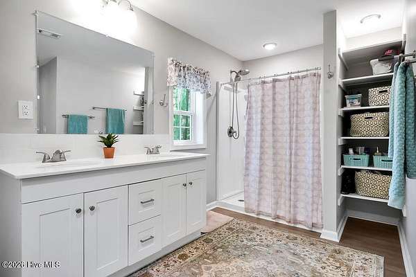 - Ceiling Fan(s), Entrance Foyer, Master Downstairs, Pantry, Solid Surface, Walk-In Shower