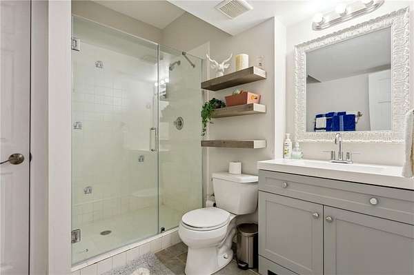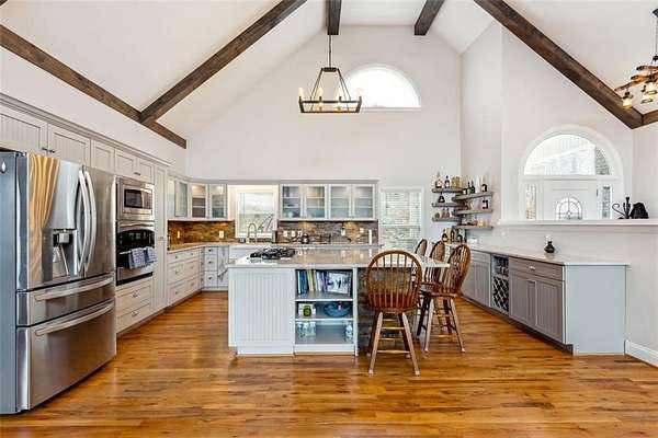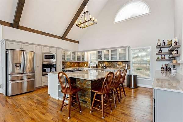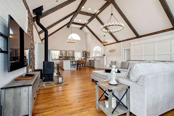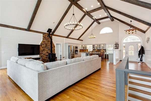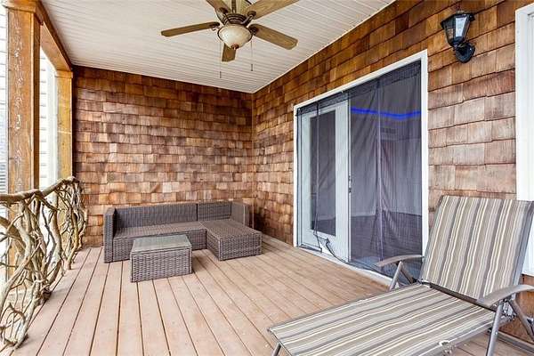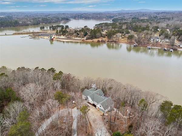 FURNITURE AND BOAT INCLUDED. This secluded lakefront retreat on Lake Lanier offers the perfect mix of privacy, comfort, and entertainment, set on 1.68 acres of gated land with breathtaking Chattahoochee River views. Fully renovated throughout, this four-bedroom, three-bathroom home is designed for big families, pet lovers, and those who love to host gatherings. Inside, the open living and dining area serves as the heart of the home, featuring high ceilings, custom wooden beams, an old-fashioned fireplace, and expansive windows that flood the space with natural light and stunning seasonal views. The fully finished basement offers incredible entertainment spaces, including a movie room with a large couch, projector, and screen, as well as a dedicated air hockey room with space for snacks and games. Additional recreation areas include a ping pong room with large windows overlooking the river and a separate pool table room, creating multiple options for fun and relaxation. Custom LED lighting is built into the moldings in the movie room and two bedrooms, adding a modern yet cozy touch. Outdoor living is just as impressive, with three decks-a main deck on the main floor, a private balcony for the basement bedroom, and a separate deck for the basement level, each offering unique spaces to take in the beautiful surroundings. A newly built, lighted stairway leads to the deep-water aluminum dock, complete with two brand-new jet ski ports, providing direct access to boating, kayaking, and lake activities. Additionally, the dock size can be upgraded to a maximum of 32' x 32' with approval from the Corps of Engineers, offering even more possibilities for lakefront living. The landscaped yard is a nature lover's paradise, featuring a man-made waterfall, a wood-fired pizza oven, and multiple picnic areas, making it perfect for entertaining or relaxing in a serene setting. A new retaining wall has been built recently, adding to the homes structural integrity and enhancing the outdoor space. Located in an up-and-coming community, this home offers convenient access to Lake Lanier, Olympic Park, where residents can enjoy Food Truck Fridays, fireworks shows, and kayaking competitions. With the bonus of most slightly used furniture and a tritoon/jetski included, this home is a turn-key lakefront escape. Whether you're looking for a peaceful retreat, a vibrant gathering space, or the perfect home for pets and family fun, this property is a rare find. Schedule your private tour today