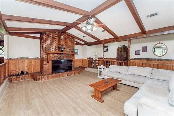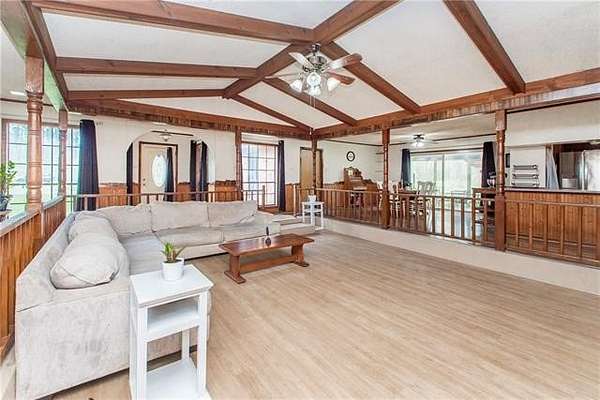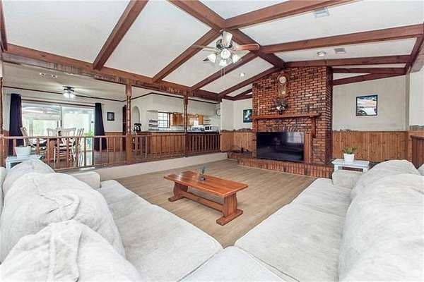 Space. Privacy. Potential. And convenience. This 2,431 square foot home offers 3 bedrooms and 2 bathrooms, plus an enclosed garage that can serve as a 4th bedroom, office, or bonus room. When you walk in, you’re greeted by a beautiful fireplace and a large sunken living room that immediately creates a warm, inviting focal point. There is no carpet anywhere in the home. Vinyl plank flooring runs throughout, giving you a clean look and easy maintenance. The layout offers flexibility and room for everyone. With the right vision and updates, this property could truly shine. Situated on 5 acres at the end of a dead-end street, you get privacy and space that’s hard to find. The property also features a pond that has been known to have fish — imagine evenings by the water or teaching to cast a line in your own backyard. While the home is located in a rural setting, its close proximity to Interstate 12 means you can be in town in no time. Located in Flood Zone X, featuring a roof less than one year old, and set within a highly rated school district, this property checks the boxes for space, location, and long-term value. Priced for condition and sold as-is.