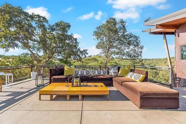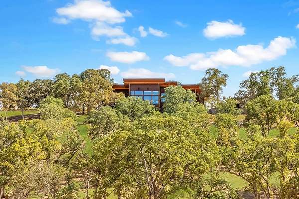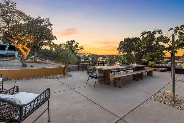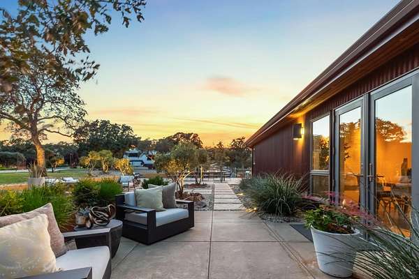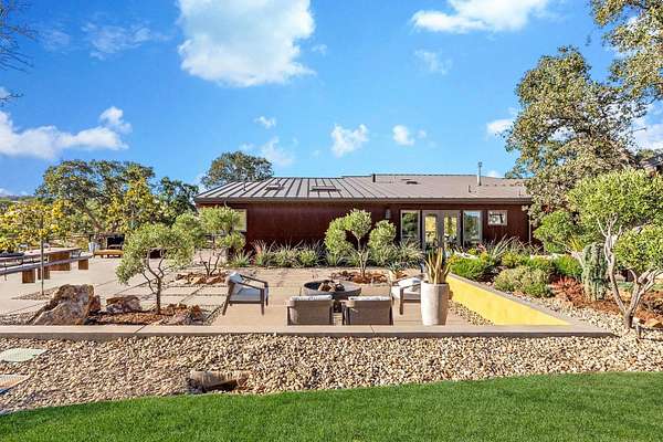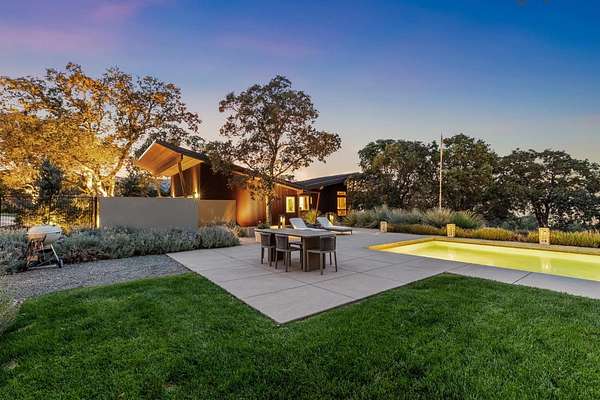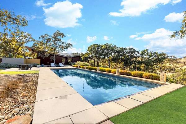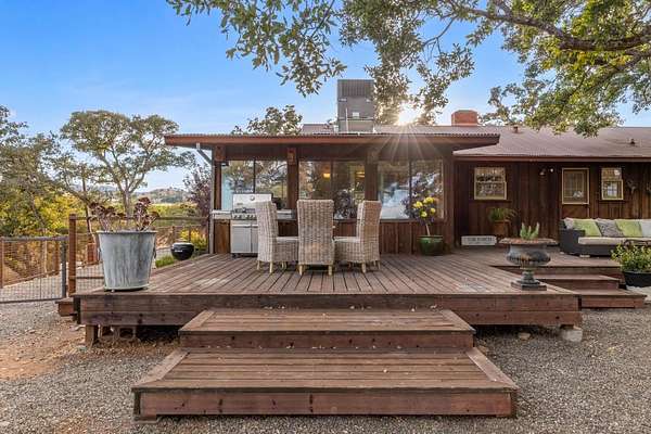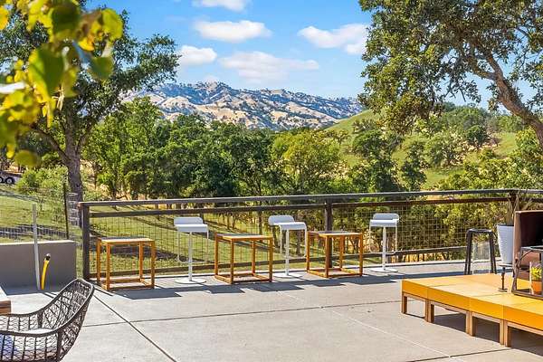 A rare 18.5-acre gated retreat in prestigious Golden Bear Estates featuring two distinctive designer homes totaling ~3,978 sq ft. The modern main residence by Eric Doud showcases soaring glass walls, vaulted ceilings, and a gourmet kitchen with Wolf multi-burner range, modern counters, custom cabinetry, and a farmhouse sink with hillside views. The great room offers a Spark Modern gas fireplace, exotic hardwood floors, imported porcelain tile, and radiant heating to tiled areas. The timeless second residence blends classic country charm with a renovated kitchen, hardwood floors, marble baths, formal dining, sunroom, and multiple private decks capturing spectacular sunsets. Outdoors, enjoy a resort-style pool with area to BBQ, panoramic terraces, mature and new landscaping, and five gated entries (one automated) with professional-grade fencing by Hines. Infrastructure includes a high-producing well, dual engineered septic systems, backup water storage, and a whole-property generator. Minutes to historic downtown Winters, with easy access and short travel times to Napa Valley, Lake Berryessa, Sacramento, and the San Francisco Bay Area, this property offers unmatched privacy, elegance, and convenience.