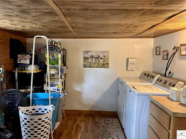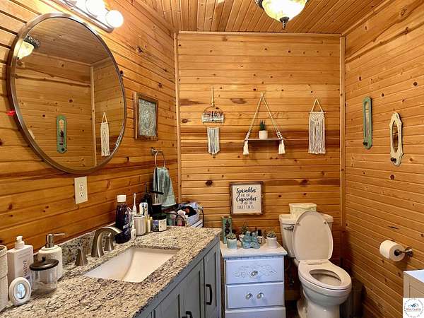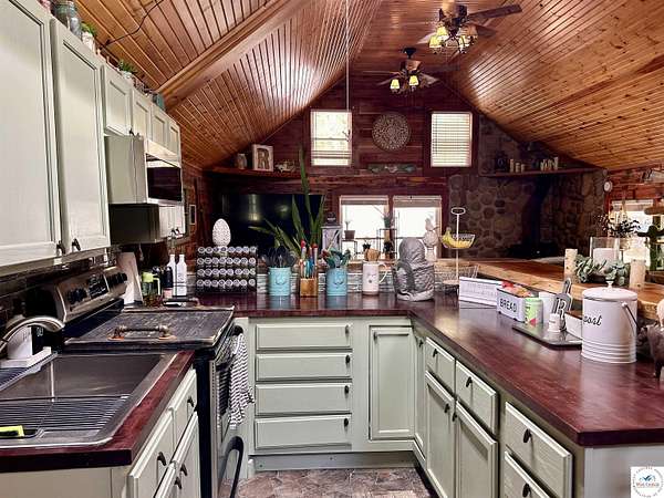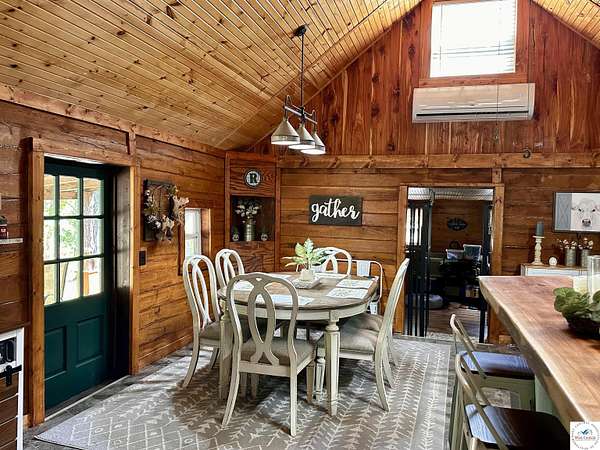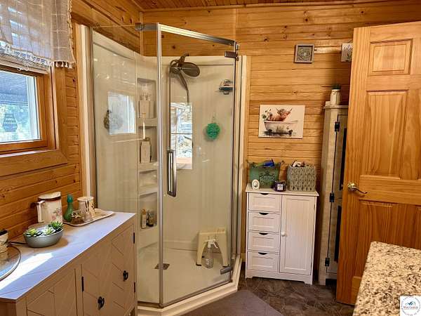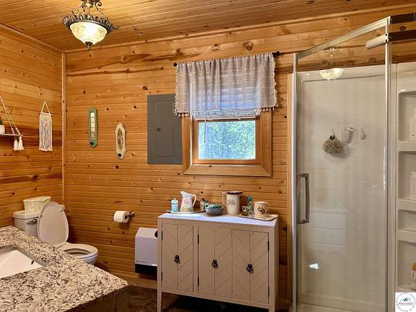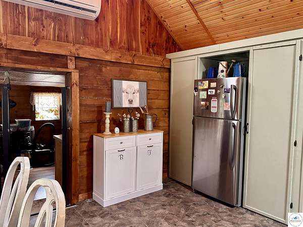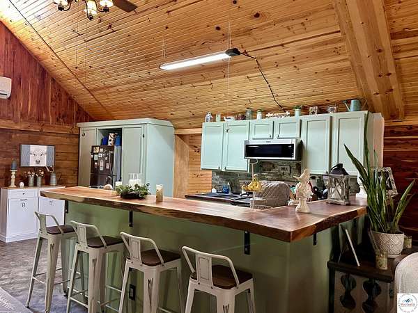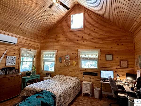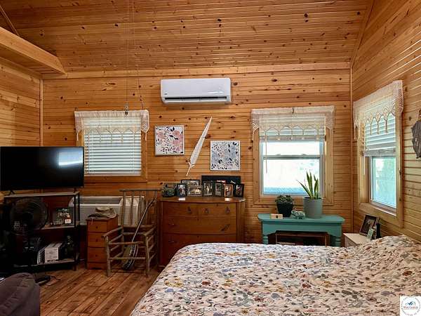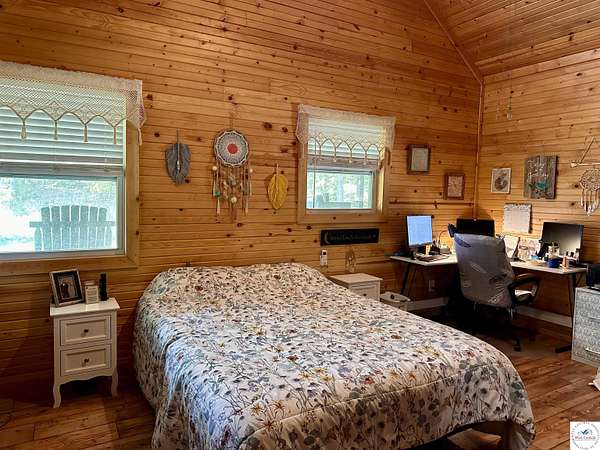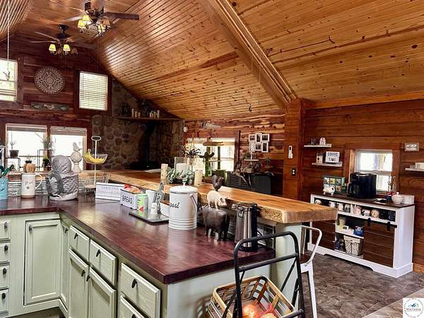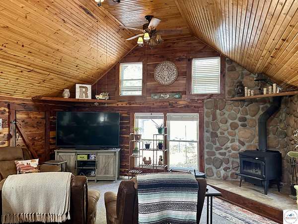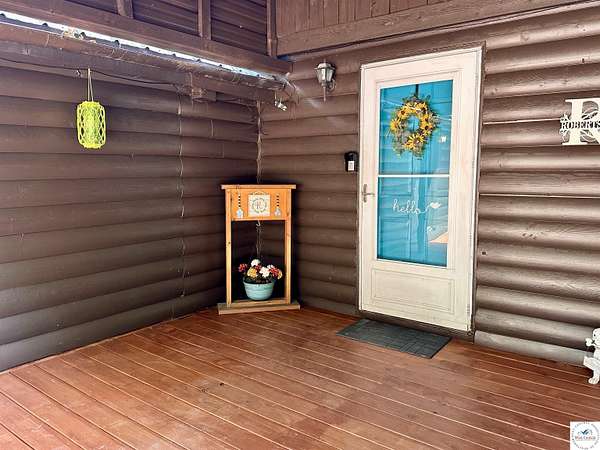Awesome Hunters Retreat on 10 Acres. Custom log cabin built with the wood from the original property, wrap around porches with views of the pond and multiple trails cut thru out the property. Large kitchen and living room area with vaulted wood ceilings and stainless steel appliances. Wood stove in living room. Second bedroom made into utility room but could easily be turned back and move laundry into master closet. No restrictions. New septic and private well. Bring your 4-wheeler and the kids. Great 24x72 shop building made like a saloon with electric, water and sewer ran to it and some supplies to make an extra living quarters or guest house with concrete in the open bays on outbuilding. RV spot with electrical, sewer clean out and water for a camper. What a place to call your own! Now is the time to live your dream!