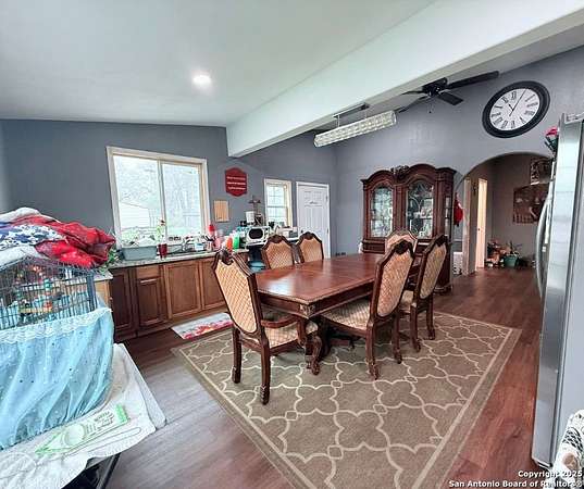 OFFERED OWNER FINANCE!!! 26003 Sand Cliff Lot 1 - A Versatile 4-Acre Property in Rural San Antonio! Discover the perfect blend of space, privacy, and potential on this improved 4-acre property, surrounded by mature trees that provide shade and natural beauty. Whether you're looking for a peaceful retreat or a property with endless possibilities, this land is ready for your vision. Designed for convenience, multiple water spigots are strategically placed throughout the property, making it easy to access water wherever needed. A portion of the land has already been prepped with a solid base ground, ideal for future build-outs-whether it's a workshop, additional living space, or recreational amenities. Adding to its functionality, a sturdy sheet metal building will convey with the property, offering additional storage or workspace. The modular home on-site has been enhanced with an addition, creating an open and airy feel with high ceilings and a spacious living room. Inside, you'll find two bedrooms, two bathrooms, and an eat-in kitchen, offering a cozy and functional living space. While some projects remain unfinished, the seller is including construction materials already purchased, giving the buyer a head start on completing the home to their taste. This unique property offers the freedom to create, expand, or enjoy as-is-schedule your tour today to explore the potential!