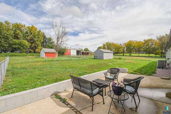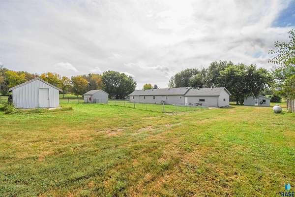 Discover this delightful ranch-style home nestled in a serene acreage setting, conveniently located just minutes from Hartford and near interstate access. This property is perfect for both new acreage owners and hobby farm enthusiasts. Enjoy over 2,000 square feet of living space on the spacious main floor, which features four bedrooms and two bathrooms. There is also a main floor laundry and potential for expansion in the lower level. The kitchen, perfectly situated at the center of the house, offers ample counter space and an open layout that connects to the dining room. The generously sized living room is filled with natural light, creating a welcoming atmosphere. Benefit from abundant storage options throughout the home, including a walk-in pantry and a laundry room. The property includes a two-stall attached garage and a one-stall detached garage, equipped with hookups for AC and heat, perfect for all your outdoor activities. The versatile outdoor space features fencing, along with several sheds and buildings, providing excellent exterior storage and room for pets, chickens, or horses-whatever your heart desires! With a total of 2,404 square feet, this property offers the perfect opportunity to make your acreage dreams a reality.