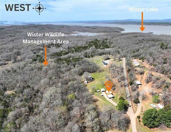 If you are dreaming of a home in the woods with easy access this is it! This mobile home with FRESH PAINT offers 2 bedrooms with 1 full bath. The covered front and back porch allow you to enjoy the beautiful outdoor setting any time of the day. The extra concrete along the front porch with carport provides ample parking. In addition to the home, there are 2 storage buildings and a concrete RV shed and parking area offering electric and water hook up. The 3 +/- acres land neighbors the Wister Wildlife Management Area offering 30,000 acres of extra privacy and hunting opportunities. Wister lake is home to great fishing and some of the biggest crappie in Oklahoma and the boat ramp is only 5 minutes away. This place has been meticulously taken care of, so all the work is done. Whether you're looking for a weekend paradise or nice homesite. Just bring the boat, hunting gear and enjoy this property and all it has to offer. All this for under $100,000.00! Call for your viewing of this property today, before it's too late.