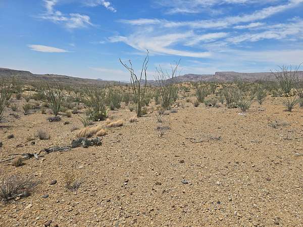 Est $1,350/moGreat 40 acre tract located in Gate 4 just east of the Wild Horse Ridge and west of the Christmas Mountain Ridge. Great views of the Chisos Mountains Ridge. Easy access from Gate 4 to the north or from Gate 2 to the South. There is a canyon running through the property. Neighbors are close but not right on the property lines. Close to Study Butte and might have cell phone service. Power is not far away from this property, but is not on the property. Active water wells in the area. Great property near town.