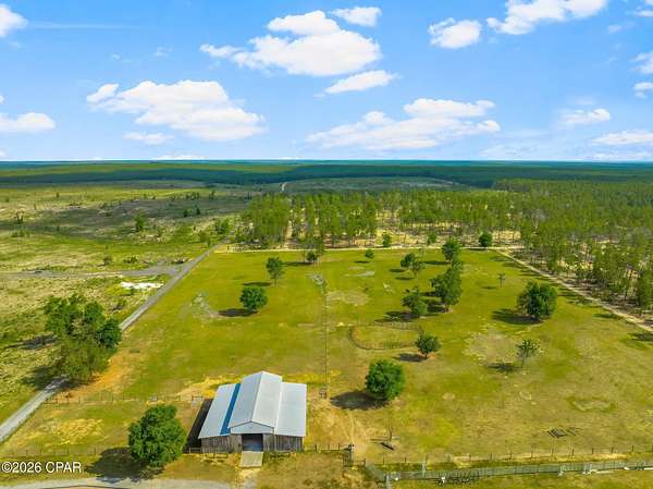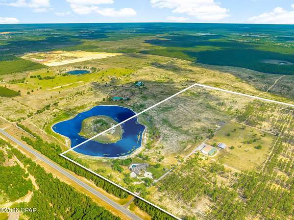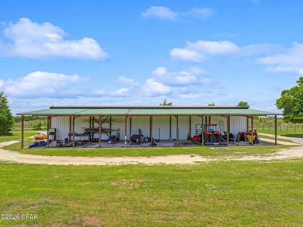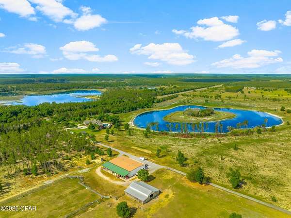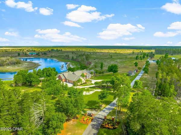 Rare Offering: 183-Acre Private Estate. Owner Financing Available. Welcome to 2601 Highway 20 E, a once-in-a-lifetime opportunity to own a breathtaking private estate in Panama City, Florida. Set behind a grand 14-foot private gate and surrounded by over 183 acres, 60 x 100 outdoor building, 7 stall barn, all pines, and a fully stocked private lake, this custom-built home offers the perfect balance of luxury, functionality, and country living. Built in 2007 with quality and craftsmanship at its core, this expansive 6-bedroom, 6 full bath, 2 half bath estate boasts over 7,351 square feet of heated and cooled living space. From the moment you step inside, you are welcomed by soaring vaulted ceilings, large open spaces, and thoughtfully designed finishes. The first floor is constructed with solid concrete block for strength and longevity, while the second floor features durable 2x6 framing for added efficiency and durability. The spacious primary suite is a true retreat, featuring his and her closets, a spa-like bath with custom tile shower, and peaceful views of the surrounding property. Entertain with ease in the formal dining room or game room, host unforgettable gatherings around the outdoor kitchen, or retreat to the cozy study for a quiet evening. The gourmet kitchen and luxurious living areas flow seamlessly to the outdoors, where a zero-entry saltwater pool, lush landscaping, and breathtaking lake views await. Additional features include spray foam insulation in the walls and ceilings, Andersen storm doors and windows, and four HVAC units for maximum energy efficiency. For convenience and peace of mind, the property is equipped with two 200-amp electrical panels, a whole-house security system, two deep wells, two septic systems, and a 40KW whole-house generator powered by two 500-gallon propane tanks. The estate also includes a three-car garage with insulated 12' x 8' doors, offering plenty of space for vehicles, recreational toys, or additional storage. At the heart of this estate lies a serene spring fed lake, with bass, bream, and catfish, offering the perfect backdrop for fishing, paddling, or simply relaxing in the beauty of nature. This is more than a home -- it's a lifestyle. A place where wide-open spaces meet modern comforts. Where you can enjoy quiet mornings by the lake, sun-drenched afternoons by the pool, and peaceful evenings under the stars. Whether you dream of creating a family compound, running an equestrian retreat, or simply escaping to your own private paradise, 2601 Highway 20 E offers a rare and exceptional opportunity. All of this -- located just minutes from Panama City, Lynn Haven, and 17 Miles from the world's most beautiful beaches. Opportunities like this are rare. Come experience it for yourself.