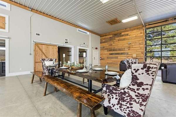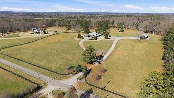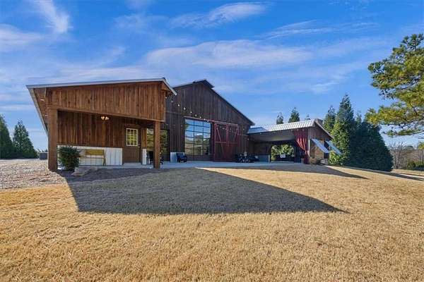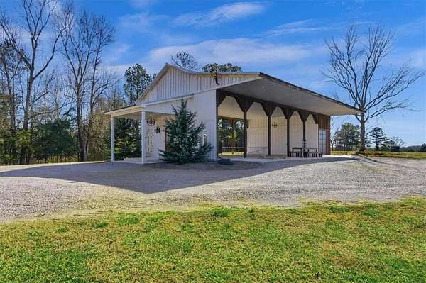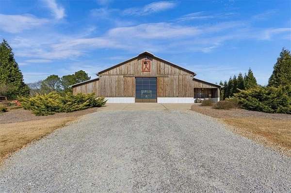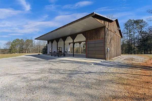Welcome to one of West Georgia's premier properties. This stunning custom-built barndominium is perfectly situated on 15 picturesque acres, surrounded by other breathtaking estates. Designed for both comfort and entertaining, the home features a spacious open-concept great room with incredible views. The oversized primary suite offers a luxurious retreat, complete with a large, beautifully tiled walk-in shower. Three additional bedrooms provide ample space for family or guests. The entire property is fully fenced and includes a custom gated entrance, adding both privacy and curb appeal. A standalone 40' x 60' barn offers endless possibilities-ideal for hosting events, creating a horse barn, garage, or sports and recreation space. Outdoor living is just as impressive, with a covered and attached living area featuring a large fireplace, perfect for year-round enjoyment. This exceptional property truly must be seen to be appreciated. Be sure to explore the virtual tour.