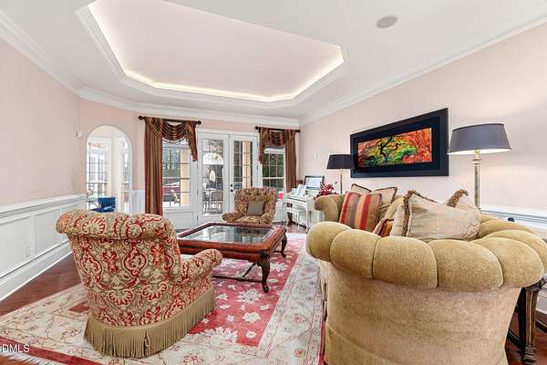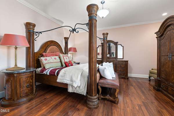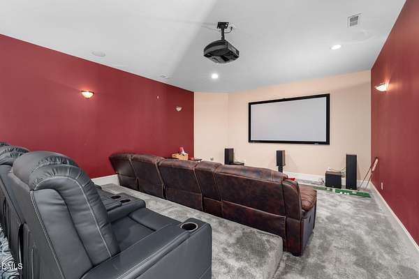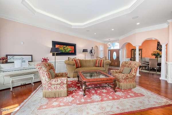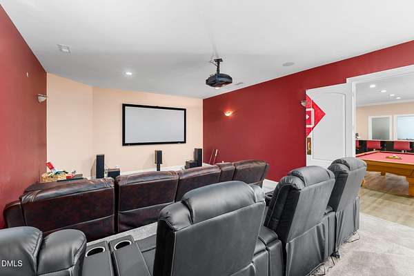 Set on 10 acres in the Fox Hill Farm subdivision, 2601 Littleleaf Lane is a DREAM. This custom built features luxury amenities that makes it the perfect retreat. It features 5 FULL ensuite bedrooms and 4 FULL bathrooms, along with a half bath, all on the main level. As you enter from the covered porch through the grand foyer, you are greeted by 10' ceilings, elegant hardwood floors and arched entrance ways. The main level also showcases a formal dining area and formal living area, which provides more than adequate space for family gatherings and entertaining during holidays and special occasions. Follow the hallway to right and the stairs to the fully finished and furnished basement is to the left. This 1,540 square feet escape is to be seen to be believed. Featuring a 12-seat theater room with stadium style seating, projector and screen, full bath and wet bar, you will have enough room and space to entertain, watch the game, enjoy movie night with the family or have a cocktail to celebrate. The wellness retreat room is a gem! Featuring a full pedicure chair, salon-grade washing station and drying chair, bring your hair stylist and pedicurist to you! And you still have room for your massage table as well! Back on the main-level, you'll find an expansive master suite that includes a double sided fireplace, dedicated sitting area with access to the outside deck, large walk-in closet, sunroom/den. The primary bath features, dual vanities, jacuzzi spa bath tub and a dual entry, walk in shower. All in the primary suite! 3 guest suite-style bedrooms on the main level are spacious and cozy. The 4 bedroom features double closet for more storage. The kitchen was refreshed in 2023 with quartz countertops, new in-wall microwave/oven combo, gas cooktop, flooring and light fixtures. An abundance of natural lighting really helps the kitchen to shine. Off of the kitchen is the cozy breakfast nook for morning coffee. The family den ajoins to the sunroom. The double sided fireplace between the two rooms is a plus feature and makes enjoying family and friends more enjoyable. The second level of this luxury escape is equally as impressive. Featuring a 28'x22' bonus room, a 35'x25' gym and a 19'x13' flex space that could serve a bedroom, this is the perfect place to train, work, relax and recover. The second level also features a HUGE 43'x69' walk-in unfinished attic area and 35'x14' utility area where the media, whole home audio and internet equipment is housed. Outside of the home is a 66'x31' TREX deck. Installed in 2018, with new railing installed in 2024, this is the perfect location for a grill, deck furniture, and outdoor relaxation. The in ground pool measures at 18'x40'. New pool liner installed February 2026 refreshes this amenity for outdoor enjoyment and cooling off on those hot summer North Carolina days. New roof in 2018. Professionally landscaped yard and a concrete circular driveway. This home truly has it all--timeless style, modern updates, and peaceful acreage in sought-after Fox Hill Farm with miles of walking trails. Minutes to downtown Hillsborough and UNC Hillsborough Hospital, and 20 minutes to Duke and Downtown Durham. WELCOME HOME to 2601 Littleleaf Lane!