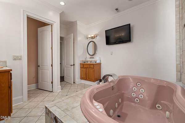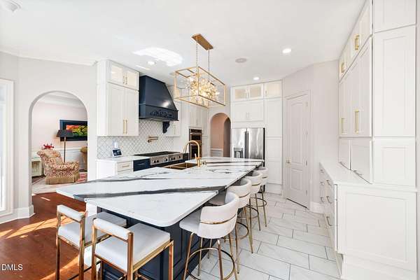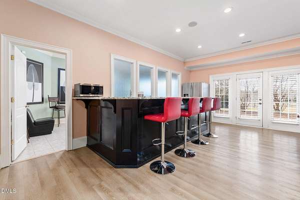 - Bar, Built-In Features, Ceiling Fan(s), Chandelier, Double Vanity, Dual Closets, Eat-In Kitchen, Entrance Foyer, High Ceilings, High Speed Internet, Kitchen Island, Pantry, Primary Downstairs, Quartz Counters, Recessed Lighting, Smooth Ceilings, Soaking Tub, Sound System, Tray Ceiling(s), Walk-In Closet(s), Walk-In Shower, Water Closet, Wet Bar, Whirlpool Tub, Wired For Data, Wired For Sound