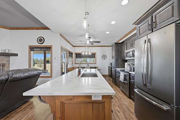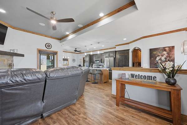 Exceptional Custom Estate - Where Luxury Meets Uncompromising QualityNestled on nearly 3 acres of private land, this breathtaking 3,800+ sq. ft. custom-built estate is a rare masterpiece that redefines upscale living. From the moment you arrive via the sweeping circle drive, open floor plan, and split bedroom design, every detail of this 6-bedroom, 3.5-bathroom home signals something truly extraordinary.Built for the EntertainerHost like never before in your personal ultimate home theater - a showstopper featuring a custom sliding door entrance, a 15'x25' built-in riser, built-in upper-level lounging, a jaw-dropping 150" 4K acoustic woven fixed-frame screen with speakers behind the screen, a full 9.2.4 surround sound system with four rear-mounted speakers, and an Epson 5040UB True 4K projector. If you'd rather be outside step out to the covered rear patio complete with built-in speakers and three ceiling fans - perfect for evening gatherings or fire up the hot tub and let the stress melt away.The Ultimate Garage & RecreationCar enthusiasts and athletes alike will be in heaven. The 5-car garage is a true standout - 1,416 sq. ft. of space featuring four garage doors, an 11-foot ceiling, a 60-foot front-to-back pass-through, and an immaculate epoxy-coated floor. Outside you will find, a stunning 30'x60' sports court with 5.5-inch thick concrete is ready for years of competition and play.Sound & Connectivity ThroughoutThis home is wired for the future. The HTD Lync 12 whole-house audio system delivers music to every corner of the property - 12 zones, 60 speakers (36 on the main floor, 24 in the basement), two Bluetooth input panels, four DMA 1240 amplifiers, and integrated doorbell/intercom. Every room is equipped with Cat6/Gigabit Ethernet access, the home is wired for Kanokla Internet Point-to-Point service, and security is handled by a Honeywell Alarm System with two Tuxedo access panels.Craftsmanship You Can See and FeelThe interior reflects an uncompromising attention to detail - custom knotty alder cabinetry with soft-close drawers and doors throughout, a beautifully finished basement with multiple safe rooms, and a fully finished living space designed for both comfort and functionality.Safety & Security Like No OtherPeace of mind is built right into the structure. The office features a 1.5-ton vault door leading to a dedicated 15'x8" concrete storm room with 12-inch poured concrete walls - and the safe inside stays with the home. Whether it's severe weather or security concerns, this home has you covered.Efficiency & Sustainability Built InThis home was built to perform as well as it impresses. Enjoy year-round comfort and dramatically lower utility costs with a 4-ton geothermal water-source heat pump (two wells), R-60 blown-in cellulose attic insulation, R-13 wall insulation, and triple-pane low-E windows. Water quality is handled from every angle with a reverse osmosis filtration system with UV protection and a Nuvo Citrus water softener. The home also features a DrainVac whole-home central vacuum system, LP Smart Siding with premium soffits and eaves, and a roof and gutters replaced in November 2025.The Details That Set It Apart2.95 acres of private landCircle driveway with commanding curb appeal1,000-gallon septic tank with lateralsCovered rear patio with fans and speakersNew roof & gutters (11/2025)This is not just a home - it's a fully integrated, thoughtfully engineered lifestyle estate. Properties of this caliber rarely come to market. Schedule your private showing today.