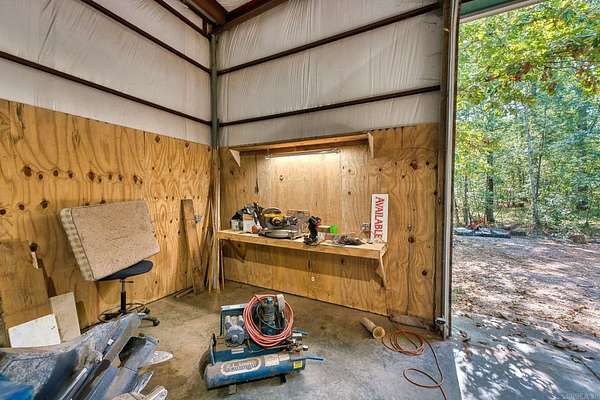 Nestled in a tranquil, 23 Acre wooded setting, this charming bungalow is the ultimate escape. Step inside to discover a cozy layout featuring 2 bedrooms, 1 bathroom, and a flexible bonus room that easily serves as a guest room, den, or home office. The true magic of this property lies outdoors. The expansive deck invites you to entertain, dine, or simply relax while soaking in the peaceful water views. A gentle path leads you to your private dock, offering direct access for boating, fishing, or simply enjoying the lakeside ambiance in an incredibly peaceful environment. For the enthusiast or entrepreneur, a massive 30x60 shop provides endless possibilities for a workshop, boat storage, or a creative studio. There is plenty of room to build additional homes or use your imagination, as it is outside of the city's jurisdiction. This is more than a home; it's a lifestyle. Secure your private slice of paradise today!