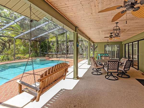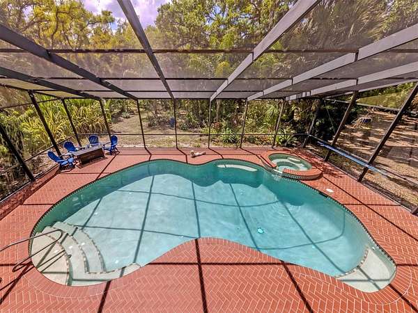 Set on 3.47 fenced acres in Venice, this exceptional 4-bedroom, 3-bath estate, a rare blend of privacy, space and modern updates. Surrounded by mature trees and fruit trees, the property feels like a private park and features peaceful outdoor living areas, along with a heated, screen-enclosed pool and spa for year-round enjoyment.