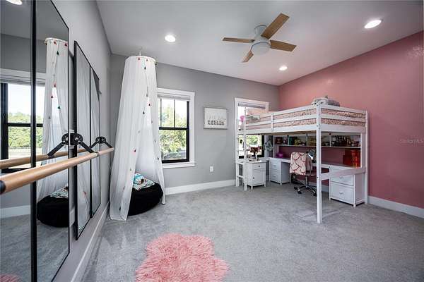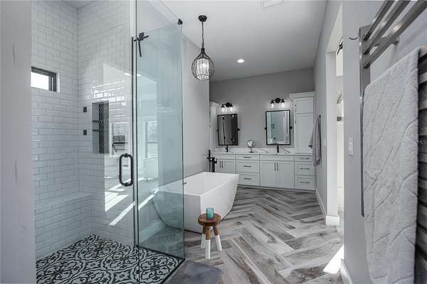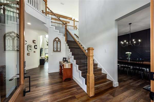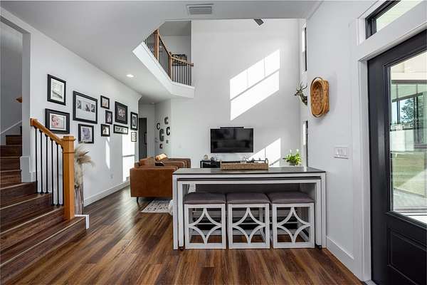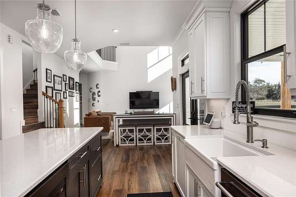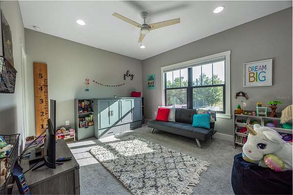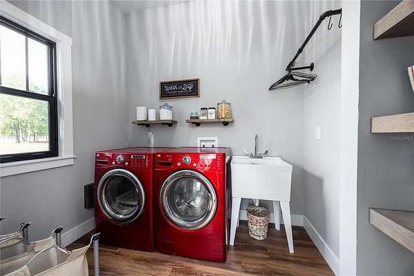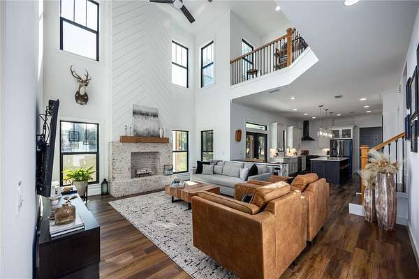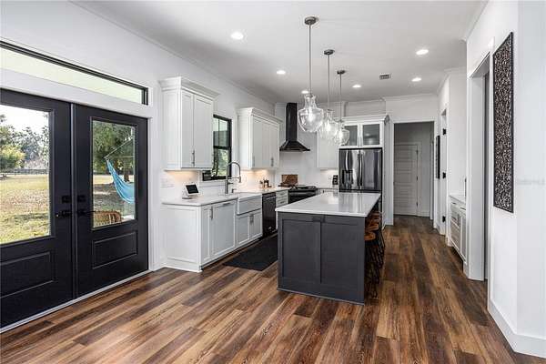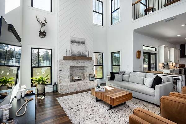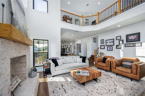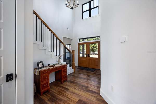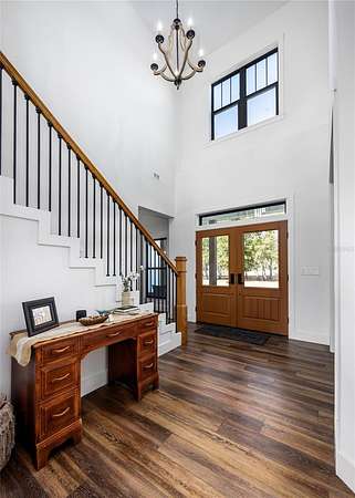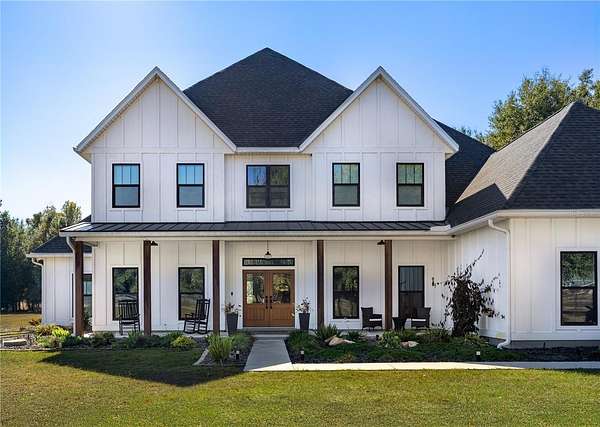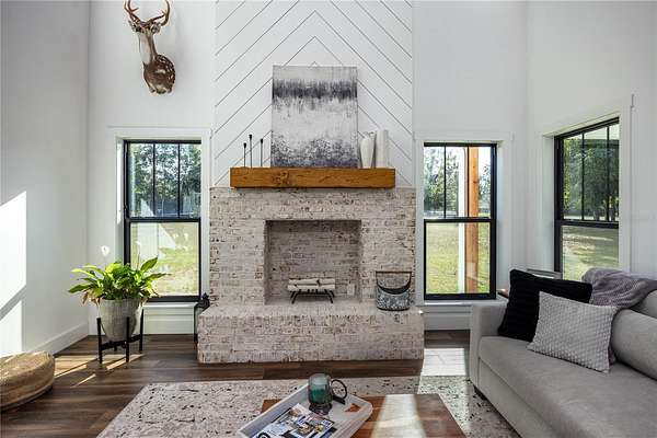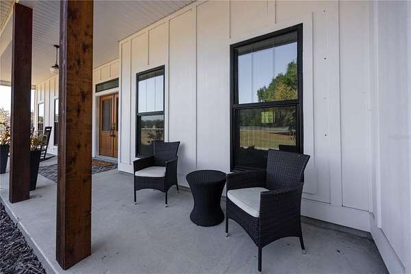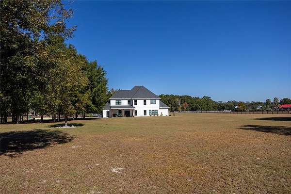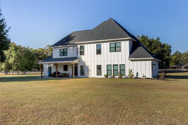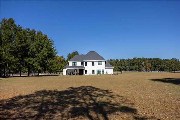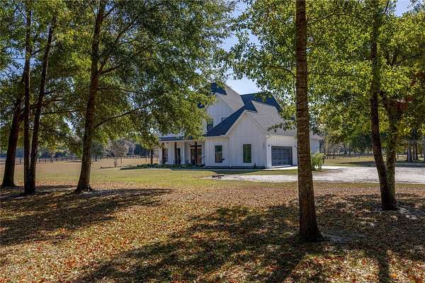 Set on over five picturesque acres in the sought-after Cinnamon Hills neighborhood of High Springs, this stunning 5 bedroom, 3.5 bath modern farmhouse blends timeless charm with thoughtful, high end design. Beautiful landscaping, a side entry garage, wood column accents, and a striking wood front door create exceptional curb appeal, while the large front porch invites you to slow down and enjoy peaceful mornings or evenings in rocking chairs. Step inside to an airy, light filled entryway that immediately feels welcoming. Just off the entry, a private office provides the ideal work from home space. The heart of the home is the living room with a cozy mantle and expansive windows, seamlessly opening to a chef's dream kitchen featuring ample workspace and a swinging door pantry room that is both functional and charming. A thoughtfully designed walkway off the kitchen includes a dry bar that opens to the dining room, perfect for entertaining and hosting gatherings. The spacious laundry room is conveniently located off the kitchen, along with a half bath that offers direct access to the backyard, ideal for indoor-outdoor living. The garage entry leads into a dedicated mudroom, making everyday comings and goings effortless and organized. The primary suite is located on the main floor, offering a private retreat with its own sitting area, two walk-in closets, and a spa-like bathroom complete with a soaking tub, walk-in shower, and double vanity. Dual stair access, from both the entryway and the main living space, leads upstairs to four additional bedrooms and two full bathrooms, providing flexibility for guests, family, or multi-purpose use. A shared common area upstairs creates the perfect reading nook or quiet lounge space. Out back, relax on the covered rear porch overlooking the expansive backyard and imagine the endless possibilities...a future pool, garden, outdoor entertaining spaces, or simply enjoying the peace and privacy that acreage living provides. All with a 2.5 car garage offering plenty of space! This exceptional property offers space, style, and serenity, all just minutes from the charm of High Springs. This location in convenient to I-75, Gainesville, Alachua, and Lake City!