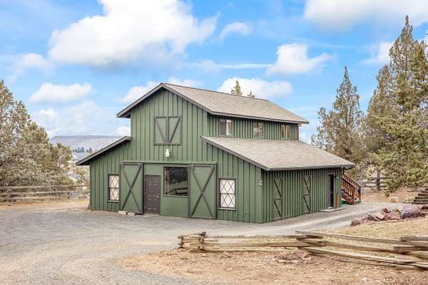 Best location in Prineville! This rare 3.99-acre property offers breathtaking 360* views of the valley, Barnes Butte, & the Cascade Mountains w/complete privacy & serenity. The Craftsman style home features an updated kitchen w/leathered granite countertops, custom wood cabinetry, gas range, & all appliances included. Natural light and views pour in from every window. The home offers 1,804 sq ft w/2 spacious bedrooms + a sunroom/office, along w/an updated primary bath featuring a tiled walk-in shower. PLUS a 1,296 sq/ft shop w/propane heat includes a guest apartment above (not included in sq ft) w/1 bed & 1 bath, kitchenette, mini-split system, & incredible views of Barnes Butte. The property is completely solar powered and there may be potential to subdivide. Garden, pastures, front & back decks w/views from every corner. Truly a one-of-a-kind property that rarely comes available.