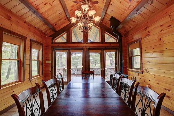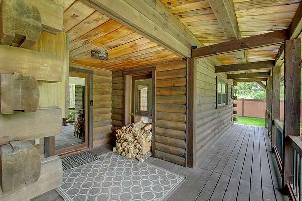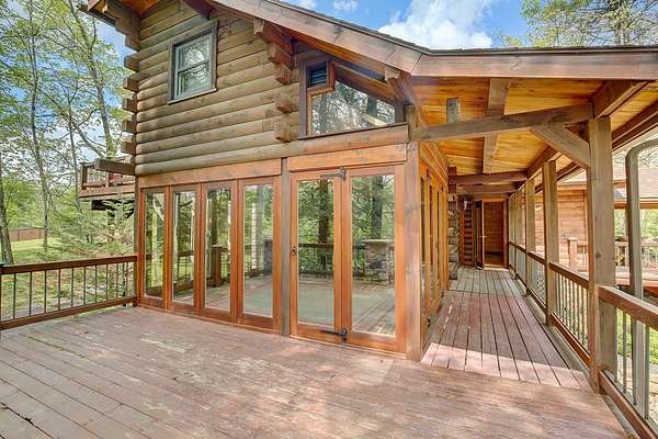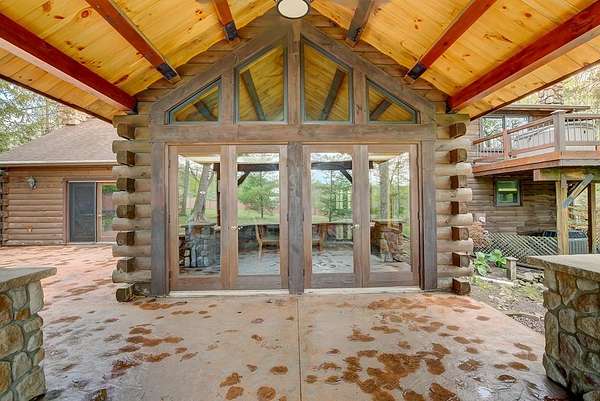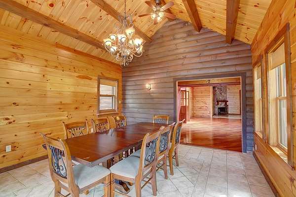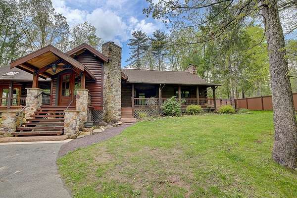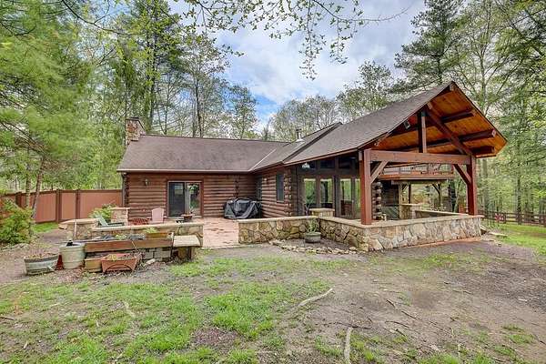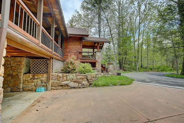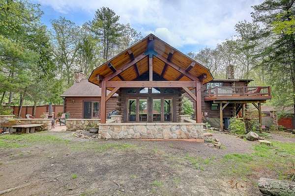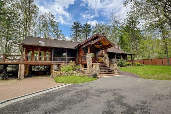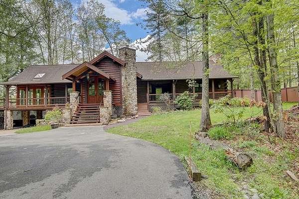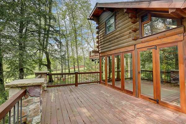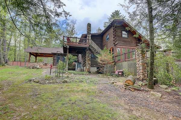Public Remarks: Gorgeous Custom Built Log Home on 8.8 Acres! Very Private but close to amenities in a desirable area. Open Floor Plan witth Brazilian Hardwood Floors. Updated Kitchen with Solid cherry Cabinetry. Large Multiple Entertaining Spaces; 2 Large Patio's, 1 covered, 1 uncovered and numerous decks. Very Unique, Well Maintained 3 Br, 3 Bath Home with Primary Bedroom Ensuite Bath and large Walk in Closet. Primary Bedroom has a nice deck with Hot Tub included. Awesome Family Room with beautiful stone fireplace.Large Dining Room with cozy woodstove, Foyer has another fireplace to warm up by.1st Floor Sunroom leads to a massive deck. Upstairs features additional Loft Space and Office, 2 Gar Garage and attached Carport. Finished Lower Level.Heat Pump, Radiant Floor heat in Family Room, Central Air.