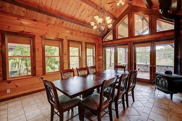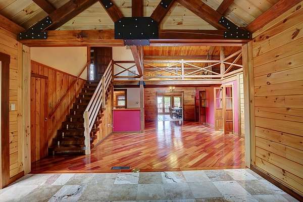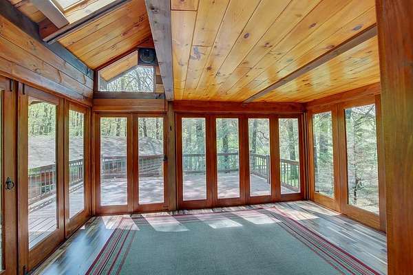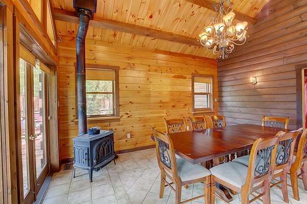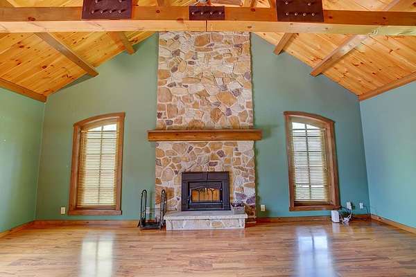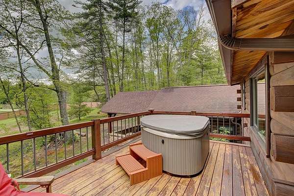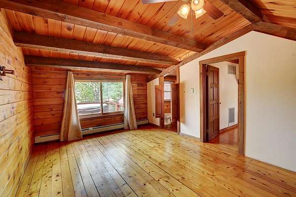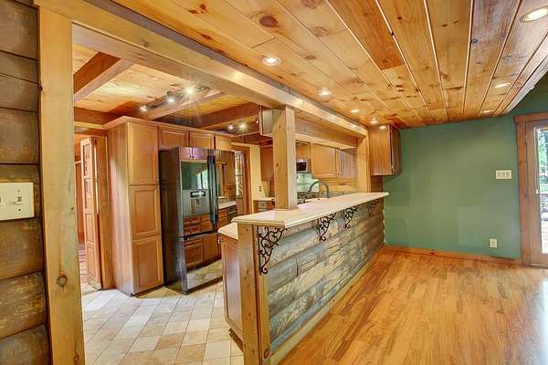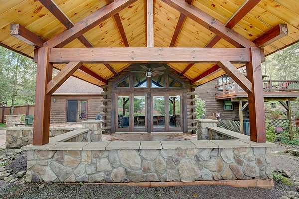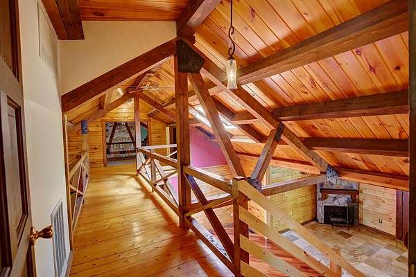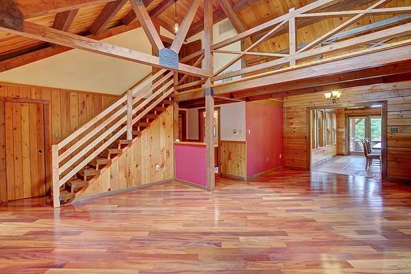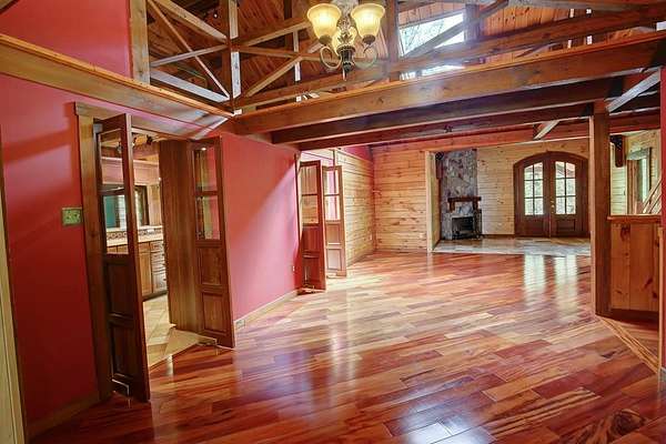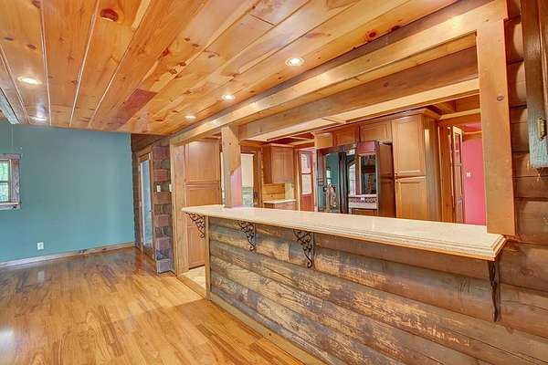 Public Remarks: Gorgeous Custom Built Log Home on 8.8 Acres! Very Private but close to amenities in a desirable area. Open Floor Plan witth Brazilian Hardwood Floors. Updated Kitchen with Solid cherry Cabinetry. Large Multiple Entertaining Spaces; 2 Large Patio's, 1 covered, 1 uncovered and numerous decks. Very Unique, Well Maintained 3 Br, 3 Bath Home with Primary Bedroom Ensuite Bath and large Walk in Closet. Primary Bedroom has a nice deck with Hot Tub included. Awesome Family Room with beautiful stone fireplace.Large Dining Room with cozy woodstove, Foyer has another fireplace to warm up by.1st Floor Sunroom leads to a massive deck. Upstairs features additional Loft Space and Office, 2 Gar Garage and attached Carport. Finished Lower Level.Heat Pump, Radiant Floor heat in Family Room, Central Air.