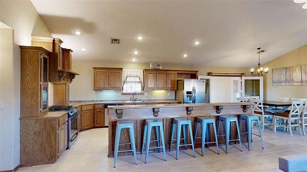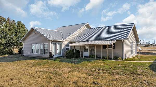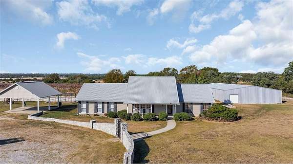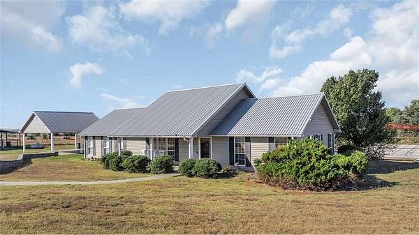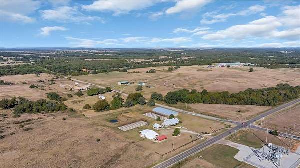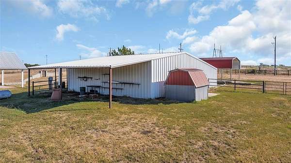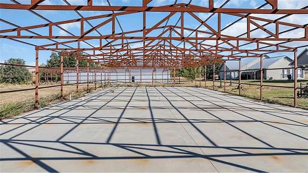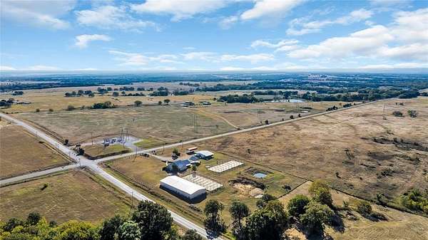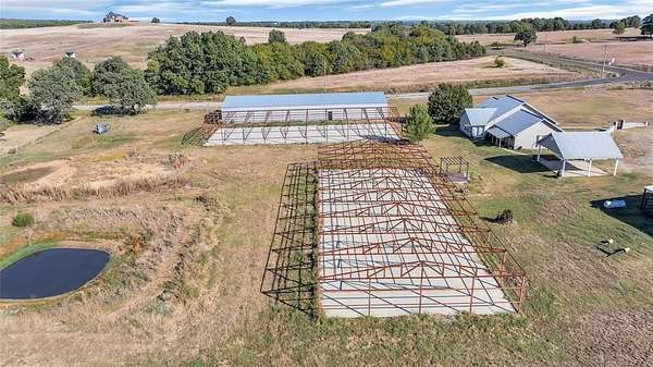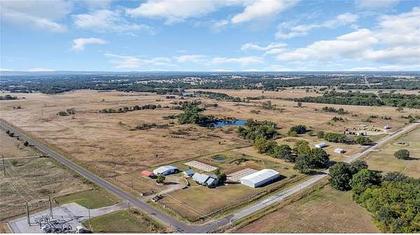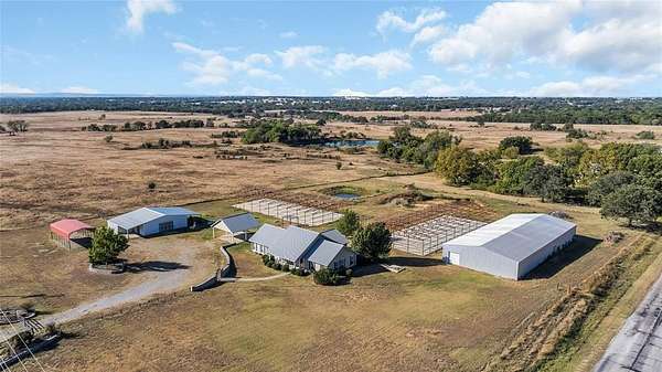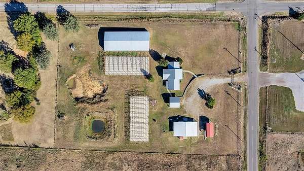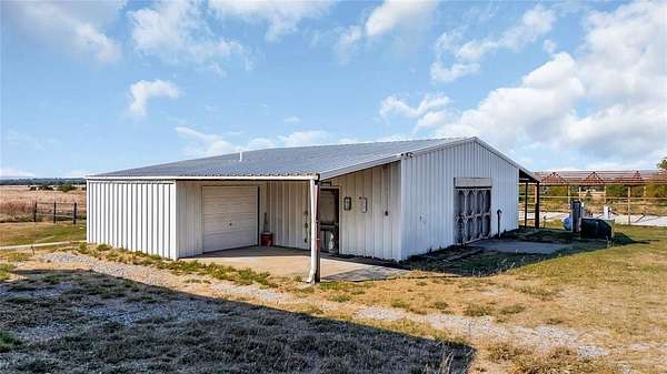 Remarkable property combining residential comfort & industrial potential. 1.6mi from I-35 Exit 64, 2.5hr north of Dallas, 1hr south of OKC. 3bd/2ba, perfect for families or individuals seeking spacious living arrangements. The master is a true retreat w/ an adjoining study area. En-suite bath has double vanities & walk-in shower. Kitchen has large island that serves as functional workspace & gathering point for family & friends. Safety is paramount w/ interior walk-in safe room. 2nd living/sunroom can be used for various purposes, family room, home office or hobby area. Large covered porch. Metal roof(2019) adds modern aesthetic, durability & energy efficiency. Guest bath is designed with convenience in mind, double vanities to accommodate multiple users simultaneously. What truly sets this property apart is its extensive industrial infrastructure, making it an ideal location for a variety of business ventures. 50x120 red iron metal building provides ample space for warehousing, manufacturing, or even a supersized workshop for large-scale hobbies/business operations. In addition to the existing building (2) 50x120 red iron buildings ready to be skinned. Whether you're looking to create additional storage space, set up a manufacturing facility, or establish a distribution center, these buildings offer the perfect canvas for your vision. For those requiring a more finished workspace, the 2,000 sq ft insulated shop is not just a basic workshop; it comes complete w/ full bath & small kitchen area. Insulation ensures comfort year round, making it suitable for a wide range of applications from fine woodworking to auto repairs. 800amp single phase electric setup support heavy machinery/advanced tech systems. 3 phase base & trench ready for implementation. 3-phase power is often required for larger industrial equip & can be a game-changer for businesses looking to expand their operations or improve energy efficiency. Gated entry provides controlled access to the premises.