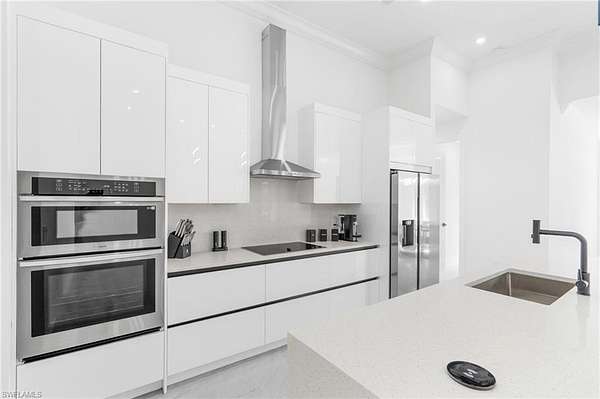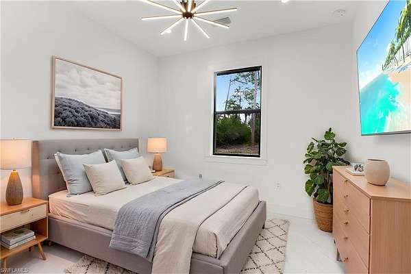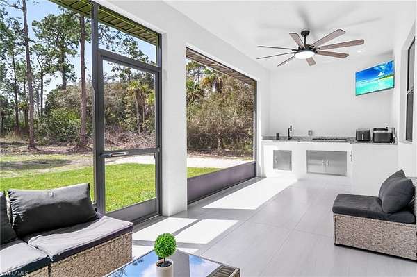 NEW CONSTRUCTION 2025 - HIGH CEILINGS & DESIGNER FINISHES - PRIVATE GOLDEN GATE ESTATES LOT! This newly built home offers modern design, quality construction, and the privacy of estate living in desirable Golden Gate Estates. Inside, you'll find extra-tall ceilings with LED lighting throughout, upgraded light fixtures, and elegant 8-foot interior doors that enhance the spacious feel of the home. The thoughtfully designed layout includes a luxurious primary suite featuring a dual walk-in shower, a separate soaking bathtub, and a spa-like atmosphere for everyday comfort. The open living spaces are ideal for both relaxing and entertaining. Step outside to enjoy Florida living at its best with an outdoor gas kitchen, perfect for gatherings and year-round outdoor dining. The property also includes an irrigation system already in place, hard-wired security cameras that will convey with the home, and a paved side driveway that provides convenient access to the rear of the property. Situated on a spacious lot that appears to be mostly upland, this property offers excellent potential for additional improvements or future expansion. Located in Golden Gate Estates, residents enjoy large private lots, no HOA restrictions, and easy access to shopping, dining, and outdoor recreation while maintaining a peaceful rural setting. THIS PROPERTY QUALIFIES FOR A 1% LENDER INCENTIVE IF USING PREFERRED LENDER, INQUIRE FOR MORE DETAILS** Renderings that showcase furniture have been virtually staged.