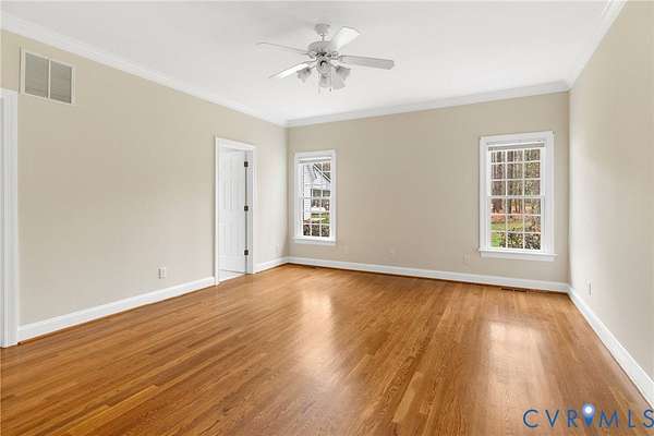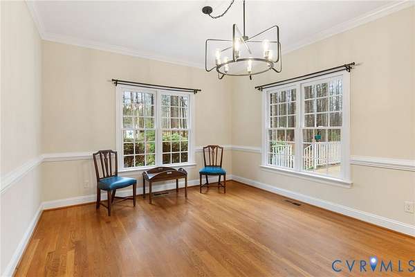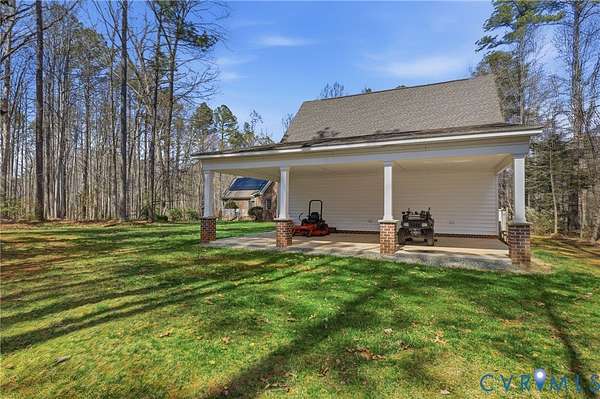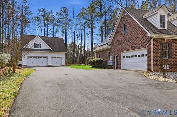 Welcome to this beautifully maintained, energy-efficient Cape Cod in the desirable Maple Grove subdivision of Powhatan, privately situated among mature trees on a peaceful lot. Featuring the valuable addition of solar panels that help reduce energy costs & increase efficiency, this spacious & thoughtfully designed home offers incredible versatility, quality finishes & exceptional garage/workshop space. The 1st floor welcomes you w/ a lovely foyer featuring hardwood floors & crown molding. The vaulted family room is filled w/ natural light & centered around a cozy gas fireplace, creating an inviting gathering space. The formal dining room features crown & chair rail moldings & hardwood floors. The eat-in kitchen offers granite countertops, stainless steel appliances, recessed lighting, abundant cabinetry, a pantry & breakfast bar. The 1st-floor primary suite features hardwood floors, crown molding, a ceiling fan, walk-in closet & en suite bath w/ double vanity, soaking tub & separate shower. 2 additional 1st-floor bedrooms w/ hardwood floors & ceiling fans share a full hall bath. The 1st level also includes a laundry room w/ cabinetry & a convenient powder room. Upstairs you'll find a spacious landing, full bath, a 4th bedroom, a flex room perfect for a gym or office & a large bonus/media room w/ walk-in attic storage. Outdoor living & hobby space truly set this property apart. The home features a covered front porch, rear deck, paved driveway, raised garden beds, irrigation, invisible fence & a whole-house generator w/ a 500-gallon propane tank. The oversized attached 2-car garage is complemented by an incredible detached 3-car garage/workshop w/ epoxy floors, built-ins, mini-split HVAC & unfinished space above already plumbed & wired for future expansion. A 34x20 covered patio w/ recessed lighting & outlets creates an ideal outdoor entertaining space. Additional features include central vacuum, 400-amp electrical service, water filtration systems & a new HVAC (2020). Too much to list - must see!!!