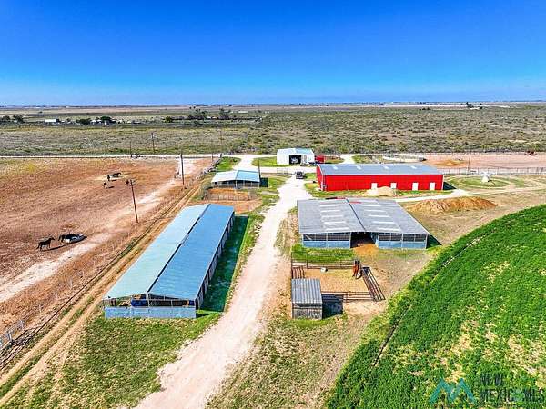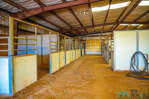 We are pleased to present the exclusive listing of the Mountain States Equine Clinic and Breeding Facility with 77.02 frontage acres located just North of Hobbs in Lea County, New Mexico. This is a wonderful opportunity to obtain a remarkable property with great facilities, infrastructure, and incredible potential. Location: Located roughly 11 miles North of Hobbs, the Mountain States Equine facility is located on W Pinson Street off N Bensing Road. Just 8 miles from the Zia Park Casino Hotel and Racetrack, this phenomenal location is close enough to town for convenience, but far enough away to feel like a true country. Water: The Mountain States Equine facility features water from multiple sources for various uses. The pivot is supplied with an irrigation well with an estimated at 400gpm located on the western edge of the property. In addition to the wells, the property has 77 shares of water rights that will convey with an acceptable offer, an important commodity in this part of the world. Improvements: The improvements on this property must be seen to believe, and give potential buyers true turnkey operation potential. There are three sets of horse stalls, one is 12x16 (x20), one is 12x20 (x8), and the last one is 12x12 (x24). There are 12 stalls in the red barn, five stalls that are 12x12, five stud stalls that are 12x16, and two foaling stalls that are 12x24, all currently being utilized for the vet clinic. The show barn for cattle is a 50x60, and has a total of 9 stalls, including one with an exterior run attached. In addition to stalls, there are roughly 3.25 acres worth of pens, separated into four divisions. The southernmost pen features stadium lights, and is also equipped with a round pen inside of it. A sprinkler system runs throughout each of the pens, keeping dust at a minimum and upkeep manageable. Next to the South pen and round pen is a 6 arm horse walker. No horse facility would be complete without a racetrack, and the Mountain States facility is no exception. A ? mile fiberglass track is located on the North side of the facility, giving riders an ample opportunity to train and fine tune their craft. Feed is also no issue for this facility, as it is furnished with a 3 tower (roughly 16 acre) 2000s model Zimmatic pivot. Alfalfa was planted in October of this year. Two additional towable pivots will convey with property, but neither are currently in use. The 77.02 Acres offer plenty of room for the buyer to build a homestead. Minerals: The owner is not aware of any mineral interests presently owned.