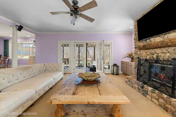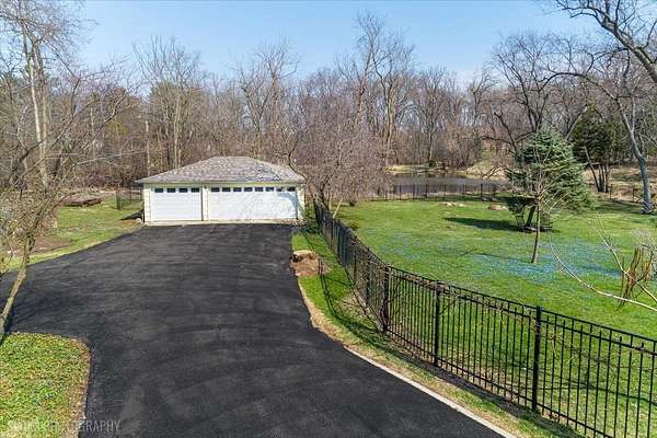 Storybook charm meets modern comfort in this beautifully reimagined country farmhouse, where timeless character and an unexpectedly expansive floor plan come together in perfect harmony. A brand-new roof (March 2026) adds peace of mind, while classic details including arched doorways, rich millwork, and gleaming hardwood floors create warmth and authenticity throughout. Set on over 4 picturesque acres with a tranquil pond, the property offers a serene, pastoral setting just minutes from Barrington Village shopping, dining, Metra access, and award-winning D220 schools. A circular drive and inviting paver walkway set the tone for what awaits inside. The welcoming interior unfolds with graceful arched openings, a charming coat room, and a spacious living room anchored by a painted brick fireplace and custom built-ins. The adjoining dining room features two delightful corner cabinets, butler's pantry access, and French doors that open to a light filled sunroom, perfect for effortless entertaining. With three sets of sliders leading to blooming gardens, the sunroom brings the outdoors in. At the heart of the home, the thoughtfully designed kitchen blends rustic elegance with modern function, featuring leathered granite countertops, a butcher block island, breakfast bar, and high-end appliances. It flows seamlessly into the breakfast area and inviting family room, where a stone fireplace and double French doors open to a screened porch, ideal for relaxed indoor-outdoor living. Enjoy peaceful mornings overlooking the pond or cozy evenings under the stars on the paver patio gathered around the built-in firepit. The main level also offers a mudroom, powder room, and both front and rear staircases for added convenience. Upstairs, the primary suite is a true retreat with a vaulted, beamed ceiling, skylit walk-in closet, dressing room, and a beautifully appointed ensuite bath. Two additional spacious bedrooms, a full bath, and a conveniently located laundry room complete the second level. Two basements provide exceptional flexibility, including a finished recreation room with full bath, plus a separate utility and storage area with second laundry and exterior access. Outdoors, the fenced yard is perfect for pets, while a three-car garage and shed add functionality. The expansive grounds offer endless possibilities for gardening, horses, recreation, or hobby pursuits. A rare blend of charm, space, and setting, this enchanting farmhouse invites you to slow down, settle in, and fall in love.