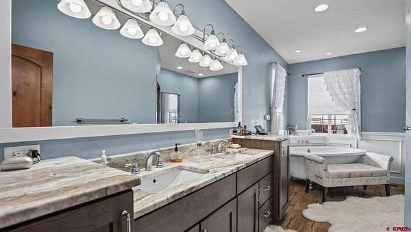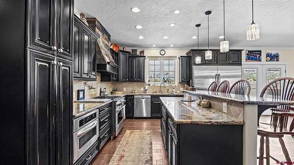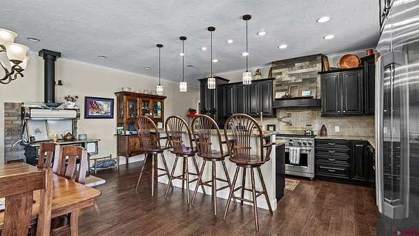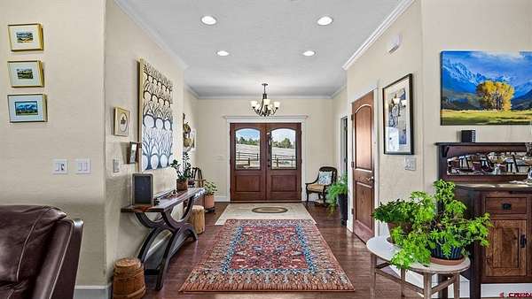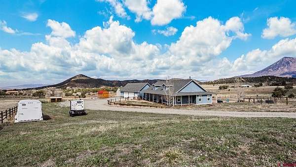 Christi Schmidt, Colorado Select Real Estate, C: 970-201-8394, christi.csre@gmail.com, www.crenmls.com: Unsurpassed beautiful mountain views! Immaculate 4 br, 3 ba ranch home on 18+/-acres. Granite countertops and beautiful custom soft close cabinets with dedicated mixer/bread machine cabinet with shelf that raises and locks without lifting appliance to counter. Stainless appliances including Kitchenaid microwave/convection and 38 cubic ft Electrolux refrigerator/freezer, 3 yr old Bosch dishwasher, GE Cafe 6 burner range with pot filler. Reverse osmosis treats the Deutsch domestic water. On demand propane heater. Separate laundry/mudroom with doggie door to outside and Maytag washer and Maytag propane dryer leads to oversized 2 car garage that can be heated by propane or thermostat controlled Quadra-fire pellet stove. Open concept living/dining, rock floor to ceiling fireplace with state-of-the-art woodburning Quadra-fire fireplace that will even let you know when to add wood. Wood flooring throughout with carpet in bedrooms. The 4th bedroom is currently used as an office/studio. Primary suite has double vanity, heated jetted tub and walking dual showerheads in shower. Separate dressing/walkin closet. There is a small office room currently used for Linen storage and internet/router equipment. The media room is located above the garage and is completed with overhead projector, screen and reclining seating. Under counter refrigerator, dishwasher and a sink add comfort for movie night. Free standing thermostat controlled propane stove. Outside, the 18+/- acres is perimeter fenced and the yard is fenced front and back. There is one spring fed pond and one seasonal pond that typically has water year round. The spring fed pond feeds the underground automatic sprinkler system for the lawn. Elevated vegetable/flower gardens watered by drip from sprinkler system. Redrock pavers from the Lyons Colorado quarry create a lovely patio in front and a walkway from front to back with patio and barbeque. Covered tiger wood wrap around porches. Separate firepit area in back. Extensive backyard area for croquet or other lawn games with spring perennials planted along the edges of pavers in front. Spring flowers along the fences in the east complete a beautifully landscaped exterior. There is a corral, barn/loafing shed, woodshed and storage shed with electric fencing on the southern border to protect neighbors wood rail fence. There is also electric fencing along the backyard perimeter to protect from animals rubbing or cribbing. 500 gallon diesel tank and 300 gallon gas tank along with a propane tank which is owned not leased. The pasture is partially irrigated by runoff water (when there is irrigation available). Irrigation is through the HOA but there is NO delivery currently to the property so irrigation is by runoff from neighbors. Native pasture, some bluestem. Pasture sufficiently provided for 15 pairs of longhorns from summer to early fall at one point. Wildlife includes elk late fall and winter, fox, wild turkeys and many species of birds including eagles, herrier and other hawks. Breathtaking is the only word for the views, they are right in the backyard. Come experience this wonderful property and you will see some of what western Colorado has to offer.