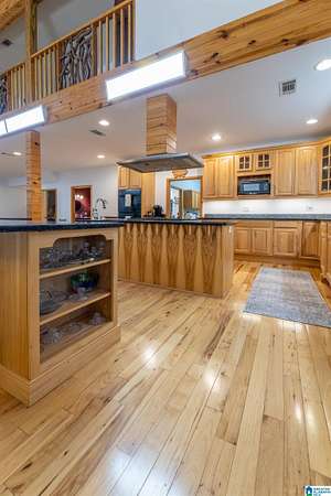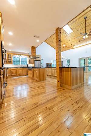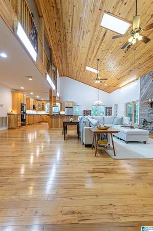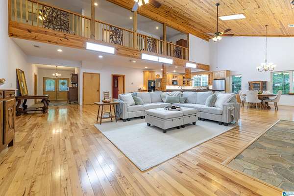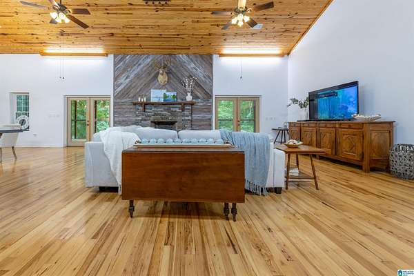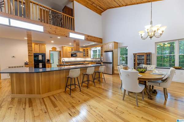 Are you looking for lakeside luxury? This stunning 7-bedroom, 6-bath home offers 6,310 sq ft of living space with massive rooms throughout. The gourmet kitchen features rich wood cabinetry, stainless appliances, and an oversized island and breakfast bar. Enjoy lake views from the screened porch, relax on the front porch surrounded by woods, or walk straight out the basement to the water. This lot has zero stairs to the water, a rare Lake Wedowee find! You'll have over 160 ft of shoreline with a private dock and semi flat lot when you make this home yours. The basement includes a full apartment with a separate entrance--perfect for guests or Airbnb income. The land offers multiple road-front lots with potential for a family compound or future home builds for investment. The home has a new roof installed last year and is complete ICF construction making utility costs minimal. Privacy, space, investment income, land and a flat walk to the lake make this home unbeatable lakefront living!
