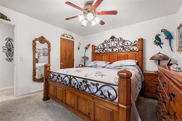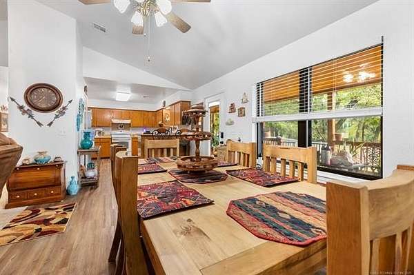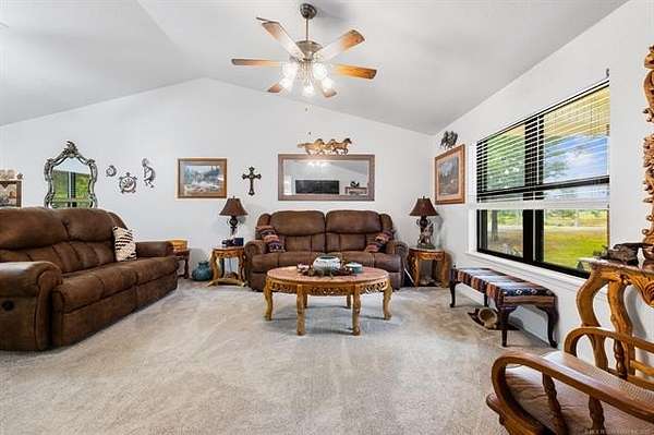 You often read about a property's great location, but this 10-acre property with abundant trees, including 30+- pecan trees, truly is in a terrific location that can't be beat just southeast of Hugo, along a short, dead-end road with the dual benefit of nearby neighbors coupled with the privacy few homes spread out from each other offers. Many updates throughout the home including new carpet, vinyl plank flooring, and paint within the past two years in addition to a new dishwasher, kitchen sink and faucet, glass entry doors at the front and back of the home, water heater, and HVAC unit in past year. The living area and dining area have abundant natural lighting and the adjacent kitchen features a pantry, oversized sink and abundant wood cabinetry. Owner's retreat consists of a spacious bedroom that will accommodate oversized furniture and a private bathroom with a stand-up shower. There are two additional bedrooms with lovely built-in shelving and a full-size bathroom for other occupants or guests. Lastly, the home's utility room has full-size washer and dryer connections, room for an upright freezer and a room-length, sturdy clothes hanging rod. Step outdoors and prepare to fall in love. The 60' (per Seller) covered back porch constructed within the past year features lighting, ceiling fans, railing and beautiful stained pine. It is the perfect place to enjoy the privacy this property offers, where you can view deer and small wildlife passing through or keep an eye on pets or children in the recently fenced in portion of yard just beyond. One of the greatest perks to this place is the one of a kind, massive, insulated workshop that has a closed in room that could be used as closed off storage space or could be converted to a restroom, an upstairs office/hangout area, 8" thick slab to support heavy-duty use, three roll-up doors, entry door, and attached lean-to for parking additional vehicles/equipment. Brand new storage building as well. Truly a must see!