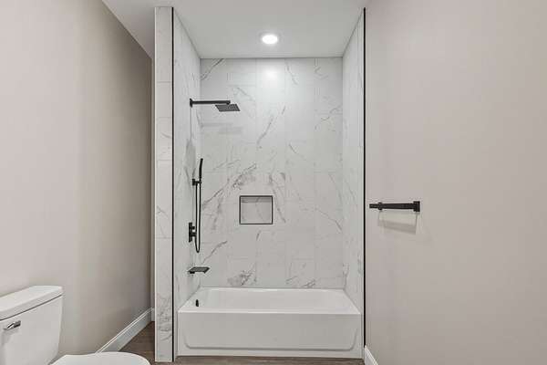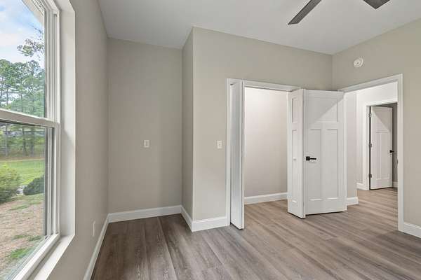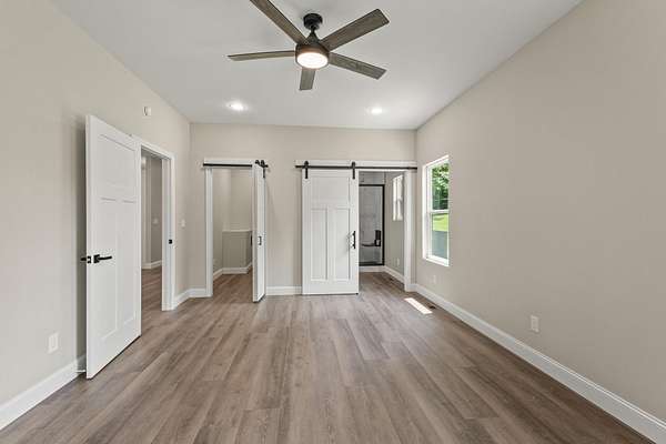 - Bathroom Mirror(s), Ceiling Fan(s), High Ceilings, Open Floorplan, Walk-In Closet(s), Walk-In Shower