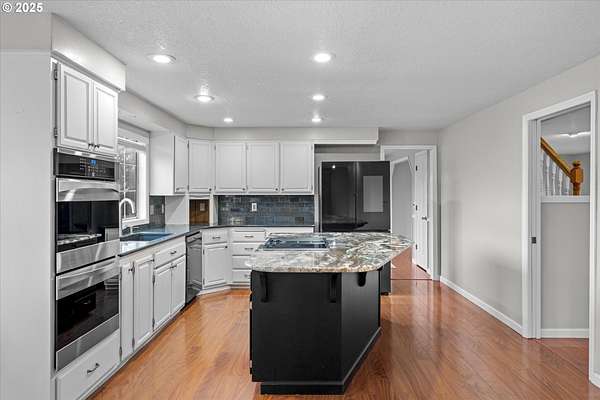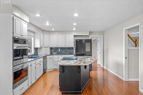 - Appliance Garage, Builtin Oven, Cook Island, Cooktop, Dishwasher, Double Oven, Down Draft, Free Standing Refrigerator, Granite, Island, Plumbed For Ice Maker, Stainless Steel Appliance