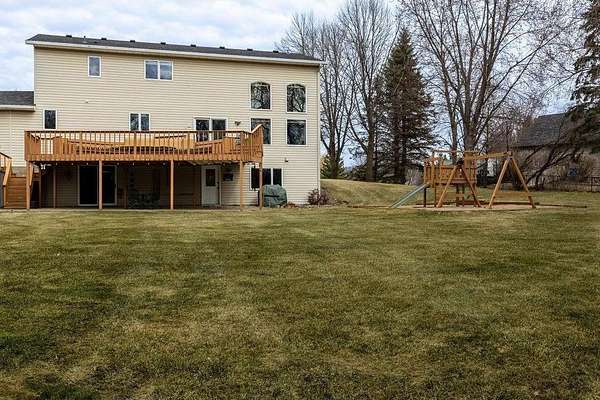 An entertainer’s dream home! This stunning property offers everything you’ve been looking for-from gorgeous granite countertops and stainless-steel appliances to gleaming hardwood floors. A sliding door off the dining area opens to a multi-level deck with built-in seating, perfect for relaxing or hosting guests. Enjoy the in-ground sport pool, complete with a newer liner and heater. The spacious family room features vaulted ceilings and expansive windows that fill the space with natural light and overlook the backyard. The main floor includes a generous bedroom, while the upper level boasts a luxurious primary suite with walk-in closets and a private full bath, plus three additional large bedrooms and another full bath. Downstairs, you’ll find a fantastic family room and a large wet bar with ample seating—ideal for game nights or gatherings. Step out to the patio and grill area, or let the kids enjoy the large play set in the beautifully landscaped, park-like yard. With 1.8 acres of space, abundant storage, and a walking path to the neighborhood playground and soccer fields, this home has it all. Conveniently located with easy access to I-94 and Highway 15. Don’t miss your chance to see this amazing home—schedule your showing today!