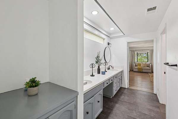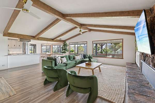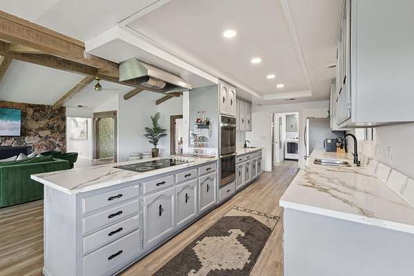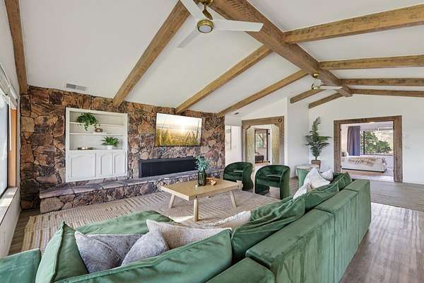- Beamed Ceilings, Cathedral Ceiling(s), Main Floor Bedroom, Main Floor Master Bedroom, Master Retreat, Open Floorplan, Quartz Counters