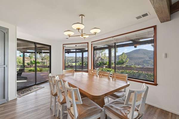 Discover Guardian Ranch, a breathtaking 40-acre Estate perched high above the serene waters of Lake Wolford. This extraordinary property is whatever you will want it to be! Perfect for Weddings, Corporate or Private Retreats, or just individual bookings if an Investor is looking to do VRBO or AirB&B rentals. Or maybe you have a very large Family and you would like to own your own Compound where everyone can come at the same time but have 4 different homes to choose to stay in. You can easily walk from home to home or go to the pool area or pickle ball courts. And don't forget that there are 3 Tiny Homes (ADU's) each with their own spacious front porch area that looks out over sweeping views. Casa Grande House is a spacious retreat with 5 bedrooms and 3 baths, ideal for large gatherings. Peacock House is charming and inviting with 3 bedrooms, 1 bath in the main level. It also has a private Studio featuring 1 bedroom and 1 bath below the main house. Lake View Event House is designed for celebrations, with 3 bedrooms (including a master suite) and 2 bath. There is a huge artificial grassy area that is perfect for any outside events. Top House sits high above all the homes and is cozy yet refined, offering 2 bedrooms and 1.5 baths. The 3 Private ADUs, each with its own porch setting overlooking spectacular views are perfect for intimate stays. There is also a barn / picnic area that could have bistro lights and lots of festivities / activities. Don't miss the multiple oversized Triple Car and Double Car Garages. Indulge in the Resort Style Amenities and enjoy the new Pool Area, complete with 3 Gas Fire Pits for evening gatherings under the stars and 2 Built-in BBQs with bar seating, creating the ultimate outdoor Entertainment Space. The Views are endless! Go from the Pool to the Pickle Ball Courts that are adjacent to it! And this is not even the end of it........there is so much property surrounding the homes! Explore scenic hiking trails and the extensive acreage behind the homes that you can set up a ''Glamping'' Camp Ground. And the cherry on top is that there are 4 massive Solar Panels that power all of the homes! The 3 Tiny Homes have their own Solar System. The homes are All Electric including water heaters. The Casa Grande House has Central Air....the rest have Mini Splits. All Information to be verified by the Buyer. There are multiple Reports to supply to the Buyer concerning Solar Lease etc