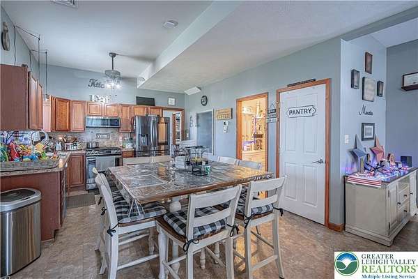 Welcome to this stunningly beautifully updated raised ranch embracing pastoral charm and endless opportunity. This home offers flexible living arrangements, ideal for anyone seeking a spacious single-family residence or an efficient duplex layout w/separate entrances. The heart of the home lies in the seamlessly connected main-level living room, dining area, and recently refreshed kitchen. Chic finishes, abundant natural light streams in the huge windows, and ample space make it ideal for entertaining or everyday family flow. In addition to the main kitchen, enjoy the convenience of a full second kitchen-perfect for supplemental living, catering, or multi-generational needs. The main side boasts three sizeable bedrooms, while the opposite wing is dedicated to an oversized master suite-private, expansive, & full of potential. A spacious attached two-car garage serves the main side, offering easy access and storage through a convenient laundry room. Set on two acres of cleared, level land with sweeping views of rolling countryside, the property invites outdoor enjoyment-gardens, recreation, or future additions-and offers a serene retreat right at home. From hosting large gatherings to accommodating extended family, this home adapts beautifully to your lifestyle. Keep it as a unified living space or leverage its existing configuration to generate rental income or home-occupancy options. The choice is yours-this property is built for versatility.