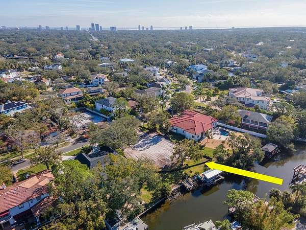 Welcome to your future land site to build your custom dream home located in prestigious Sunset Park. This oversized waterfront lot (22,115 sq. ft. almost 1/2 acre) 200 feet deep can accommodate a 10,000 square foot home and still provide a sizeable private parklike setting backyard. The land has been cleared for your convenience and includes a newly built 27 foot covered boat house with remote control and a separate loading and unloading dock. The boat lift can lift up to 8000 pounds of boat weight. Located on the N. Dundee River 3 minutes from the wide open mouth of Tampa Bay and minutes from the West Shore District where you can dock your boat while you dine and watch the sunsets. Navigation of these water ways are above average due to depth and width of the canal. Be prepared to experience and enjoy boating, fishing, and water sports as your daily lifestyle. Let's don't forget the finest school choices both public and private are walkable distance along with a new playground down the street. The neighborhood has a traffic light allowing easy access to Westshore Blvd. The neighborhood of Sunset Park is a short distance to Tampa International Airport , International Mall , and Downtown Tampa.